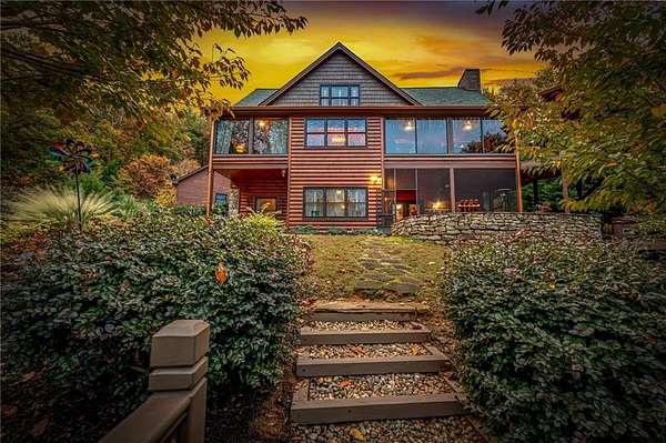 Discover the perfect blend of tranquility and convenience in this beautifully crafted 3-level home nestled on a 1.60-acre park-like lot in one of Blue Ridge's most exclusive neighborhoods. With 4 bedrooms and 3 full bathrooms, this spacious retreat offers both privacy and room to gather, all just 5 minutes from downtown Blue Ridge. Step inside to find inviting living spaces filled with natural light and mountain charm. The open-concept main level features warm wood accents, a cozy fireplace, and seamless access to the wrap-around deck, perfect for morning coffee or evening sunsets. A screened-in porch and hot tub deck provide year-round comfort and relaxation, surrounded by mature trees and peaceful garden spaces.The chef-inspired kitchen boasts stainless steel appliances, granite countertops throughout, and plenty of cabinet space for storage and entertaining. The primary suite offers a private retreat with a luxurious tile shower, whirlpool soaking tub, and elegant finishes. A spacious laundry room conveniently located on the main level adds ease and functionality to daily living. The home's multi-level design offers flexibility for guests, a home office, or a private retreat. Outdoors, enjoy multiple tranquil sitting areas, a detached two-car garage, and beautifully maintained grounds ideal for entertaining or quiet reflection. Located in a no short-term rental community with private lake access and scenic walking trails, this property offers a rare sense of peace and seclusion while keeping you close to Blue Ridge's restaurants, shops, and vibrant mountain culture. Whether you're seeking a full-time residence or a private getaway, this home captures the essence of mountain living--a serene escape just minutes from everything.