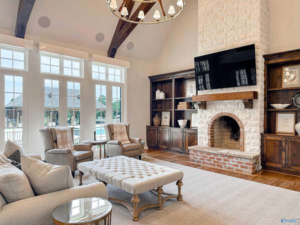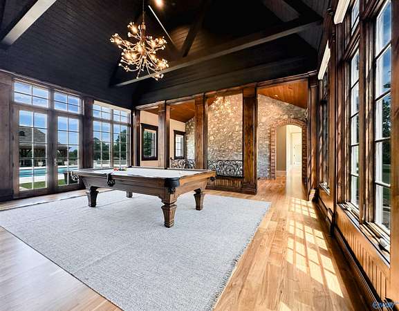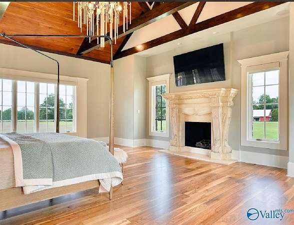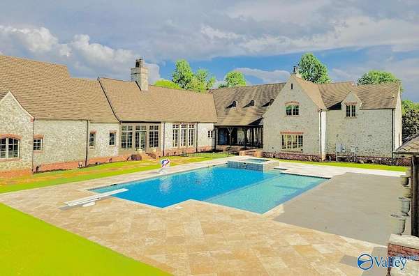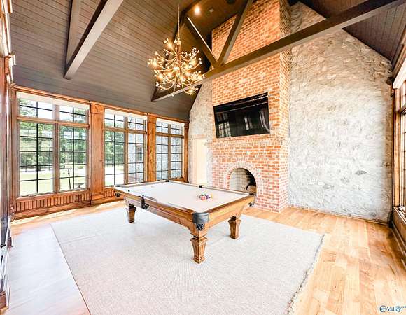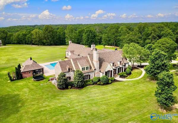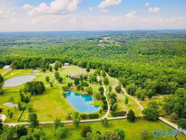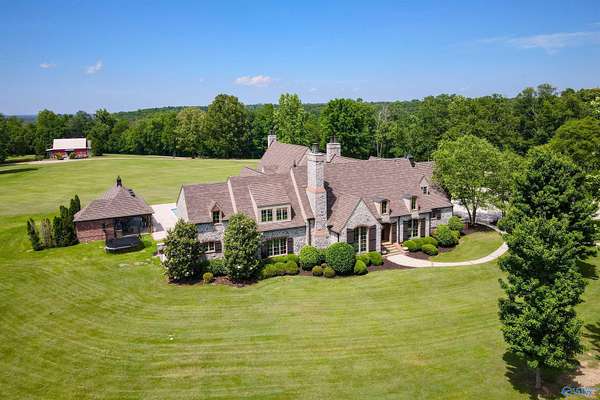 HARTSELLE CITY SCHOOLS!! This exquisite home by nationally renowned architect Jack Arnold is one of his most popular French Country designs. He uses his signature timberwork, stone & soaring ceilings to make this a magnificent home--both elegant & welcoming at the same time. Situated on manicured estate acreage, this home offers everything...You will find not one but two add'l houses, a pool, tennis/pickleball/basketball court, 3 golf holes & 2 stocked ponds. Guest House (Red Bldg) is 2,695 sq ft. and Multi-use residence (White Bldg) is 1,533 sq ft. Both are just as wonderful as the main home. Hunting is allowed on this 48+ acres FIVE-STAR MATERPIECE!! Get your reservations TODAY to tour!!
