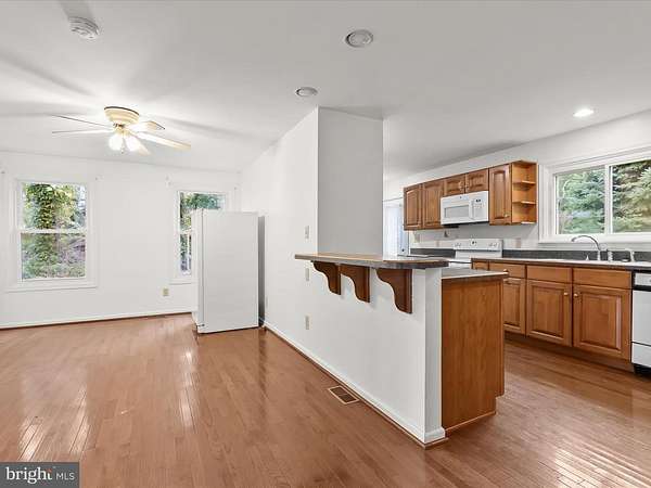 - Ceiling Fan(s), Country Kitchen, Dining Area, Entry Level Bedroom, Formal/Separate Dining Room, Pantry, Recessed Lighting, Stall Shower Bathroom, Traditional Floor Plan, Tub Shower Bathroom, Wood Floors