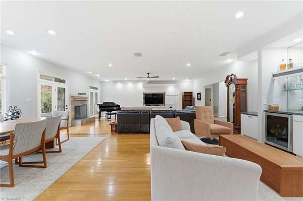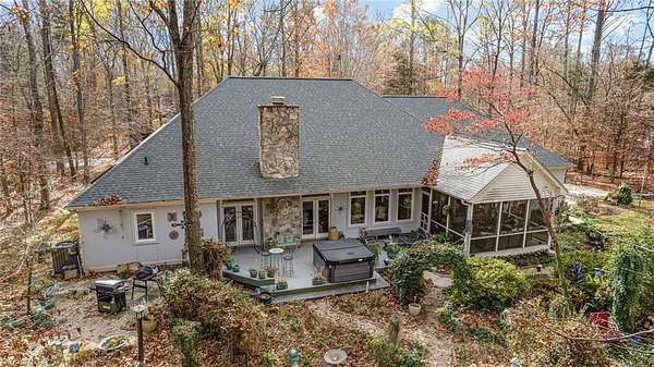 OPEN HOUSE SUNDAY 2-4. Step inside this stunning 3-bedroom contemporary gem designed for effortless living and unforgettable entertaining! The split floor plan offers a blend of privacy and openness. Retreat to the luxurious primary suite, featuring 2 bathrooms with separate showers, a jacuzzi tub, new toilet, two custom closets (2025), and a versatile exercise room that easily doubles as an office or storage. The great room steals the show with a cozy gas log fireplace and built-in shelving, flowing into the spacious kitchen complete with prep space, a breakfast nook, and serene views of the screened-in porch. Outside, enjoy a soak in the hot tub (2024), unwind by the koi pond, or recharge in the lush garden area. This home also includes a wet bar, dining room, and a dedicated office area. Updates include hardwood floors in all bedrooms (2025), HVAC (2018), gas water heater (2023), septic (2025), new doors (2025) generator hook-up (2025), and a roof with 50-year shingles (2022).