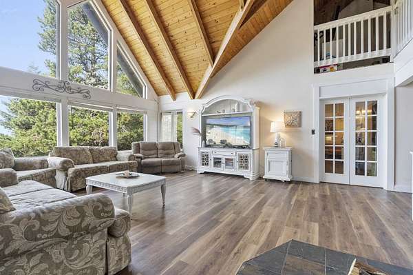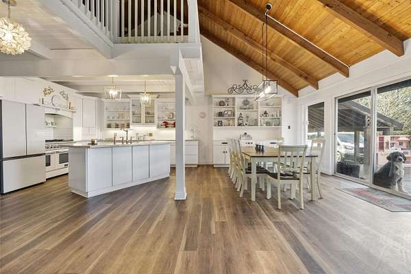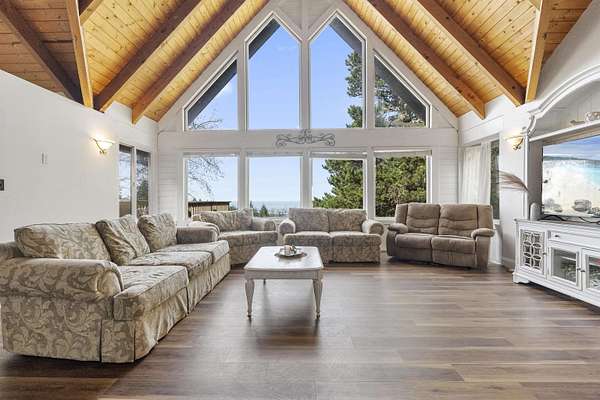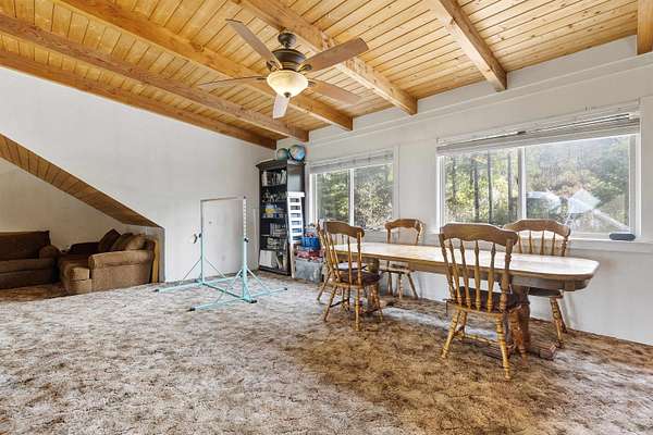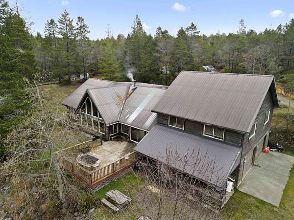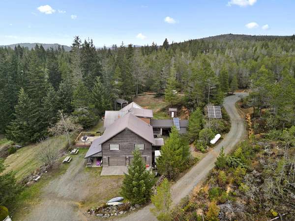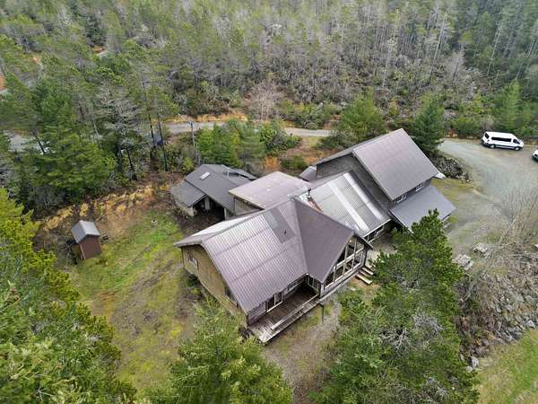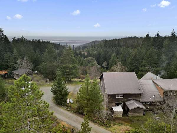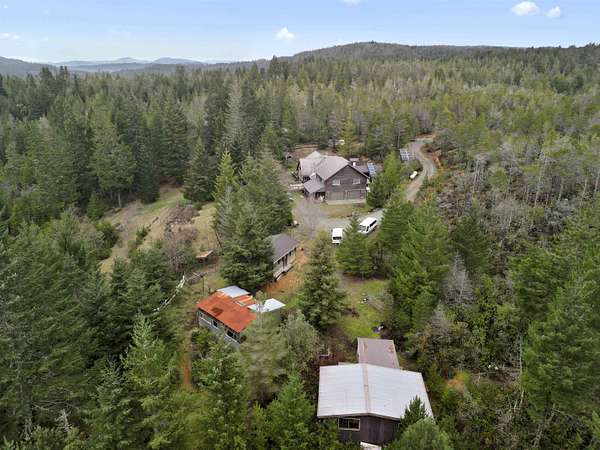 Tucked away in the mountains above Crescent City, 2400 Low Divide Road offers 35 acres of privacy, stunning ocean views, and the opportunity to create your dream off-grid retreat. This 3,700-square-foot home features four bedrooms and two and a half baths, designed with rustic charm and plenty of space to make it your own. While the home could use a little TLC, its custom construction, open beam ceilings, and spacious layout provide a strong foundation for a truly special country getaway. The large living and dining areas are warm and inviting, centered around a beautiful hearth with a wood stove that keeps the home cozy during cooler months. The gourmet kitchen is well-appointed with commercial-style appliances, offering plenty of potential for those who love to cook and entertain. Expansive windows bring in natural light and frame the breathtaking views, while the spacious deck is the perfect place to relax and take in the fresh mountain air. Completely off-grid, this home is equipped with a solar power system, battery backup, inverter, and a generator, ensuring reliable energy throughout the year. Water is sourced from both a well and a cistern, with 5,000 gallons of storage to provide security through drier months. The property itself is well-suited for a self-sustaining lifestyle, featuring several outbuildings that can be used for storage, workshops, or additional living space. There is also a cabin on the property that could be converted into another home on the property. There's ample room for livestock and farm animals, as well as a large garden area ready to grow your own fresh produce. This home presents a rare opportunity to own a private mountain escape with endless potential. With a little care and vision, this property can be transformed into a truly remarkable off-grid haven. Whether you're looking for a peaceful retreat, a homestead, or a place to put down roots in the countryside, this spacious and secluded estate is ready to be shaped into something truly special.