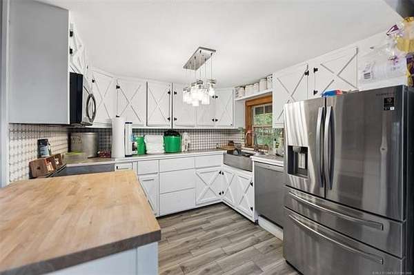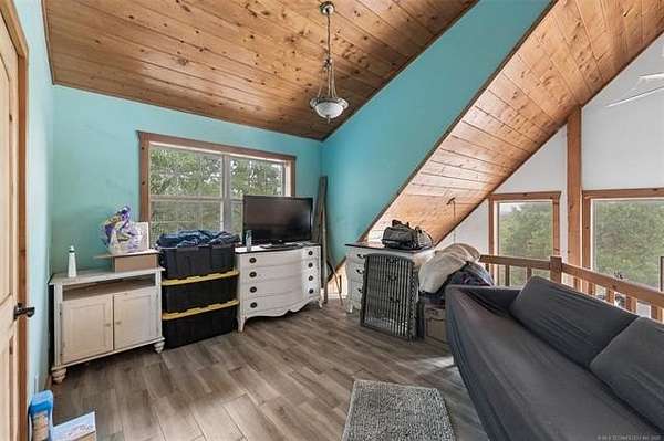 Escape to your private sanctuary in this beautifully updated log-sided cabin, perfectly nestled within 13 sprawling, wooded acres (m/l) across two parcels. This tranquil "cabin in the woods" offers the ultimate retreat without sacrificing modern convenience, having been completely overhauled with all-new electrical and plumbing systems. Enjoy year-round comfort and efficiency with a newer HVAC system and a high-efficiency tankless hot water heater already in place. Inside, the home features a spacious open layout highlighted by vaulted ceilings, a large kitchen island, and a versatile upstairs loft and office space. The expansive wrap-around deck provides the perfect vantage point to take in the serene, timbered landscape and local wildlife. Ideally located for both nature lovers and professionals, you are less than 5 miles from the scenic Illinois River and just minutes from Northeastern State University and Tahlequah's medical hub. Whether you're looking for a full-time residence or a peaceful getaway, this turn-key property offers the best of the Oklahoma outdoors.