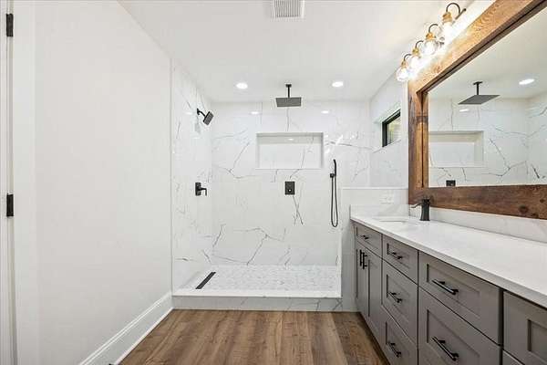 Experience the perfect fusion of timeless charm and modern farmhouse elegance in this exquisite property set on 2.88 private acres. Meticulously designed inside and out, this home seamlessly combines style, practicality, and updated craftsmanship with a hint of vintage allure. The open-concept layout showcases durable life-proof plank flooring, ensuring a smooth and cohesive flow throughout the expansive living spaces. At its heart lies a chef-inspired kitchen, complete with quartz countertops, a spacious island, and high-end finishes, making it ideal for both hosting gatherings and everyday enjoyment. The finished basement provides additional versatile living space, perfect for a home theater, fitness area, or guest accommodations. With 6 bedrooms and 4 tastefully designed bathrooms, there is ample room for everyone. Luxurious tile showers lend a spa-like ambiance. Outdoors, unwind on custom porches featuring tongue and groove ceilings and sturdy pine posts, perfectly framing the serene surroundings. A detached garage offers both storage and workspace, with a loft above that can serve as a home office or extra suite. This home masterfully blends contemporary luxury with rustic warmth, offering an unparalleled country living experience with modern design elements. Schedule your private tour today!