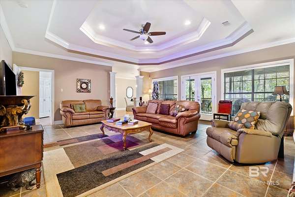 A real hidden treasure on 2.42 acres with over 300 ft. on Hamilton Creek, with bass, brim, catfish and more. The winding driveway invites you to this one-owner, custom built amazing home. Wooded seclusion and privacy await, but just minutes to everything. 4 very spacious bedrooms, 2 full baths and 2 half baths. The primary bedroom with a tray ceiling is 27' by 20' which gives you room for large furniture plus a seating area. Added amenities are 2 large walk-in closets, 2 separate vanities, one with a dressing table, jetted tub and separate shower, and a separate water closet. Other bedrooms are spacious and boast their own walk-in closets. Large foyer invites you into a very open plan with a great flow. Large dining room, breakfast bar, breakfast room all make entertaining easy. kitchen and all 4 bathrooms have granite counters, a walk-in corner pantry, lots of cabinets, a double oven and so much more. Crown molding, chair rail, blinds and window treatments stay with the home. The oversized family room with double octagonal tray ceiling overlooks the large, screened porch with surround sound. The screened porch faces a separate patio that is adorned by magnolias, satsumas, navel oranges, kumquats, lemon tree, and other flowering bushes and hardwoods. One of the two ac units is less than a year old, and the other is 5 years old. All furnishings can stay or be removed. Transferable termite bond. All bricked and trimmed in concrete hardiboard to resist wear. Buyer responsible for verifying all measurements and relevant details. Buyer to verify all information during due diligence.