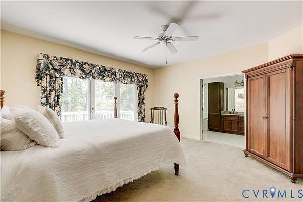 Welcome to this beautiful French country two-story home offering just under 4,000 square feet of living space, situated on just over 2 acres on a quiet cul-de-sac in Rosemont. This four bedroom, 3 full bath, 2 half bath home features a dramatic cathedral ceiling in the foyer, creating an elegant first impression. The formal living room is appointed with hardwood floors and a double-sided gas fireplace, which is also shared with the inviting family room that overlooks the private, wooded backyard. The kitchen is well-equipped with granite countertops, white cabinetry, a walk-in pantry, and direct access to an expansive deck, making it ideal for both everyday living and entertaining. A formal dining room with hardwood flooring provides an excellent setting for gatherings. The main-level primary suite offers a spacious retreat, complete with a large walk-in closet and an en-suite bath featuring a soaking tub. A laundry room with built-in shelving adds convenience to the main floor. The upper level includes three additional bedrooms and a bonus room/home office, along with two additional bathrooms. The home offers abundant storage and closet space throughout, including a two story walk-in/up attic enhancing both functionality and comfort.