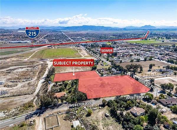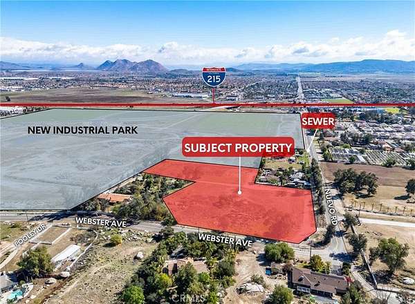 Riverside County is an incredible investment opportunity featuring proximity/access to three major interstates, the nation's busiest port system, Ontario Airport, UPS & FedEx Ground Hubs and BNSF. The area around Nuevo Road and Webster Avenue in Riverside County/Perris, CA is rapidly developing with major commercial and industrial projects. Nearby, the Perris Gateway Distribution Facility is under construction on 42 acres near I-215, set for completion by August 2025, bringing 855,330 sq ft of warehouse space and 27,000 sq ft of retail including Taco Bell, Starbucks, Shell, and Sonic. Infrastructure improvements are also underway, including an $8 million upgrade to Ramona Expressway and an expansion of the Perris-South Metrolink Station, adding a second platform and a 2.7-mile track upgrade. With these developments, the region continues to grow as a key logistics and business hub in Southern California. With the ideal zoning and location, this property is great for development or investment. Secure this Opportunity Zone land before it's gone!
