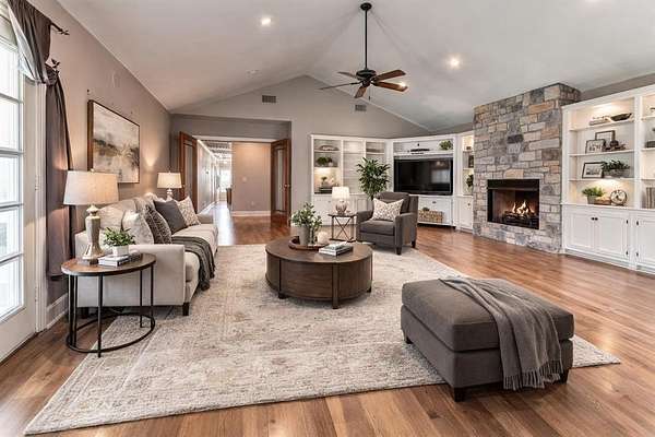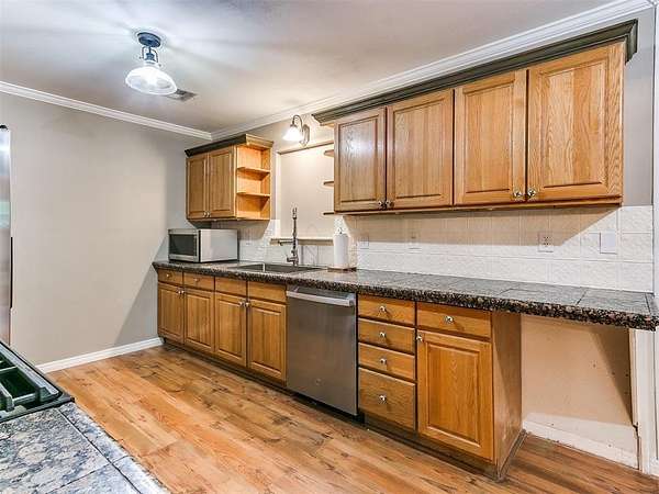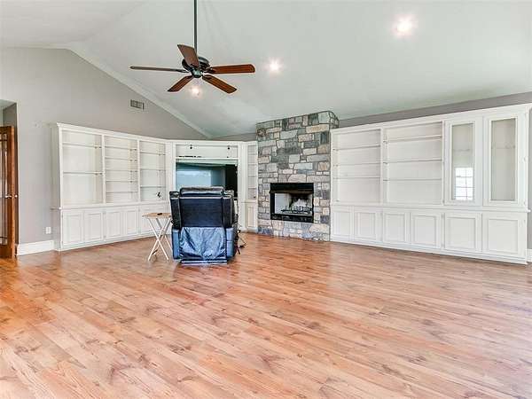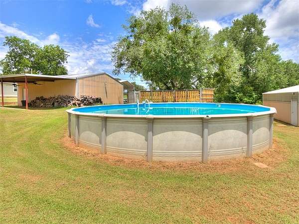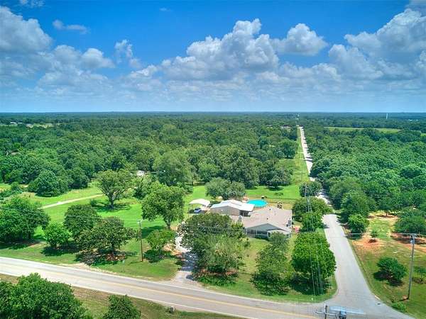 Paved road access, no HOA, and located in the Little Axe School District. This 3,686 sq ft home offers two private primary suites on opposite ends, multiple living areas, formal dining, and two heated/cooled flex rooms (not included in bedroom count). The great room features soaring ceilings, a rock fireplace, built-ins, surround sound, and French doors. The kitchen includes KitchenAid stainless appliances, dual-fuel cooktop, granite countertops, and abundant storage. Fresh paint and new carpet add a move-in ready feel. Enjoy peace of mind with a whole-house Generac generator, two 4-ton HVAC systems, three hot water tanks, well and septic, and a 4-year-old roof. Outside, 7.5 mostly cleared acres offer room for horses or livestock plus: 30x40 shop with 240V, 24x30 shop with 120V, RV carport plus additional carport, 30' above-ground pool with deck, covered front & back porches Convenient to Lake Thunderbird with space, flexibility, and freedom.