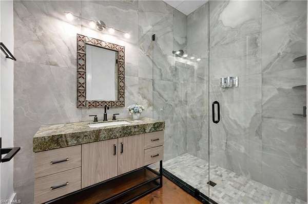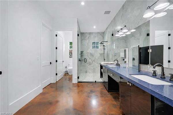 This remarkable offering presents a rare opportunity to create a true estate property in the heart of Central Naples, on Coach House Lane-now recognized as one of the area's most desirable streets due to its prime location, expansive lot sizes, and the surge of newly constructed multi-million-dollar homes, many ranging between $10-$15 million. The property spans approximately 2.5 acres, with roughly 1.5 acres remaining for future development. Buyers have the ability to construct a custom main residence of up to approximately 8,000 square feet, while utilizing the existing 3,400-square-foot structure-built in 2023-as luxury guest quarters, family accommodations, or a private retreat. Designed by Glendale Group Construction, the modern courtyard-style residence is thoughtfully positioned amid mature foliage and offers exceptional flexibility. The guest estate features four private-entry suites, each with an en-suite bath and kitchen or kitchenette, delivering a true resort-style experience with privacy and comfort for family and guests. The central living space includes a commercial-grade kitchen, full bar, and seamless indoor-outdoor flow-ideal for entertaining or extended stays. This is the perfect opportunity to live comfortably on-site in the guest residence while building your dream home on the rear portion of the property-an increasingly rare advantage in Central Naples. The result is a private, expansive estate capable of accommodating multi-generational living, grand entertaining, and long-term investment potential. All of this is just minutes from Downtown Naples, 5th Avenue South, Waterside Shops, and the area's world-famous white-sand beaches-offering unmatched convenience without sacrificing space or privacy. Luxury. Scale. Location. A once-in-a-generation opportunity in Central Naples.
