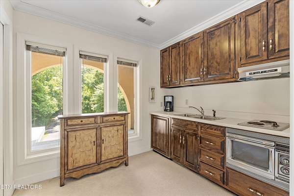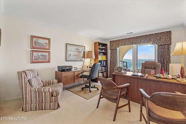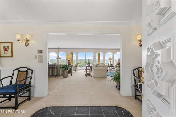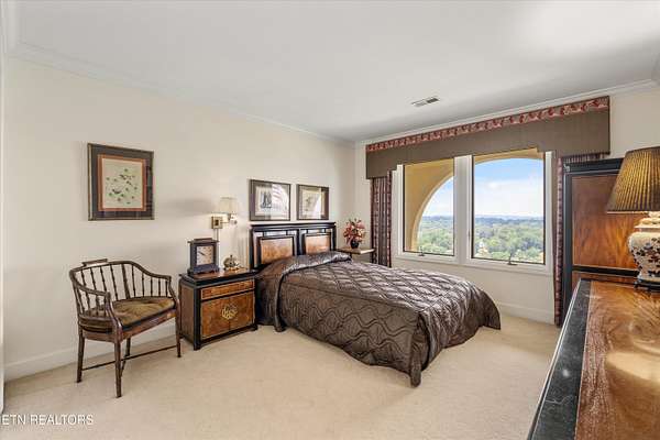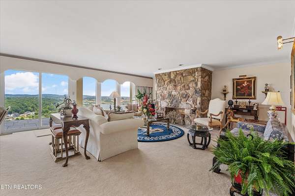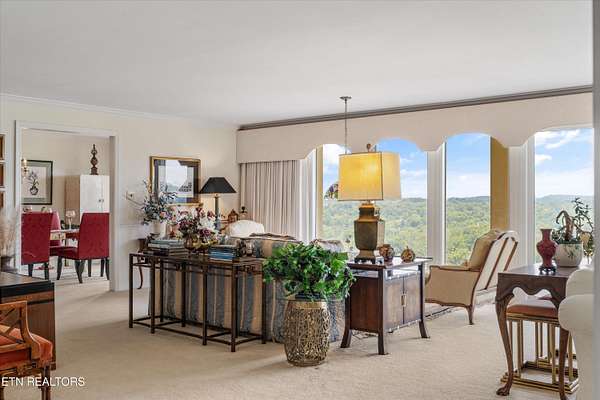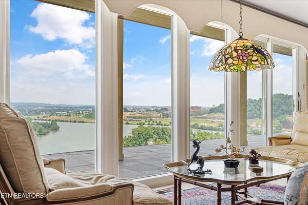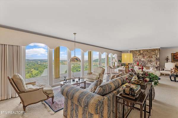 Iconic Landmark with Unparalleled Views atop Cherokee Bluff Cragvue Estate is perched across from Cherokee Boulevard, this iconic estate commands one of the most breathtaking 180-degree vistas in all of Knoxvillesweeping from the Smoky Mountains to the glistening waters of the Tennessee River, Sequoyah Hills parks, and the downtown skyline. Watch spectacular Fourth of July fireworks from your private vantage point. Behind elegant iron gates lies a serene, nearly four-acre sanctuary featuring manicured gardens, a peaceful fountain, classical statuary, and even a charming potting shed. A stately entry opens into an art gallery-style foyerperfect for showcasing your collectionleading into an open, light-filled great room designed to frame the unforgettable views and to entertain in effortless style. Multiple outdoor patios create a garden setting ideal for al fresco dining and quiet reflection. The main-level primary suite is a true retreat, complete with a stone fireplace and panoramic views that feel as though you're floating above the clouds. Upstairs, all capturing majestic views, are two well-appointed bedrooms, office and separate apartment with kitchenetteperfect for guests or potential separate living quarters. Located just five minutes from the University of Tennessee Medical Center and downtown Knoxville's dining, arts, and cultural sceneand only a short drive to McGhee Tyson Airportthis rare property offers ultimate privacy, convenience, and timeless beauty. A once-in-a-lifetime opportunity for those seeking peaceful, elevated living close to it all.