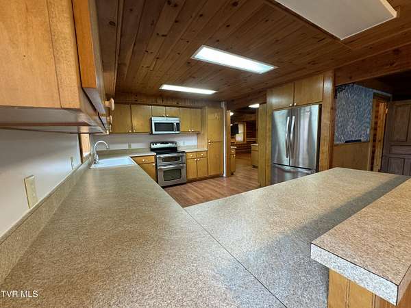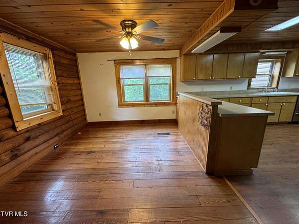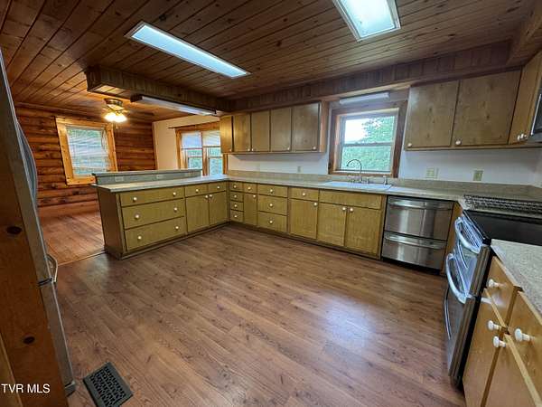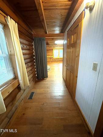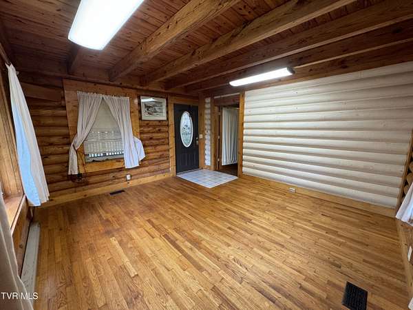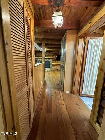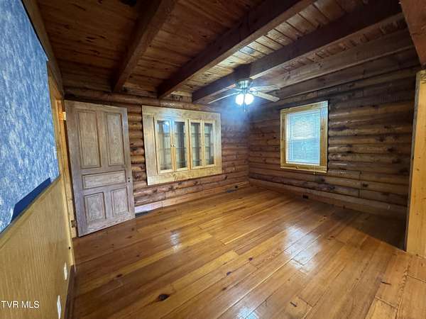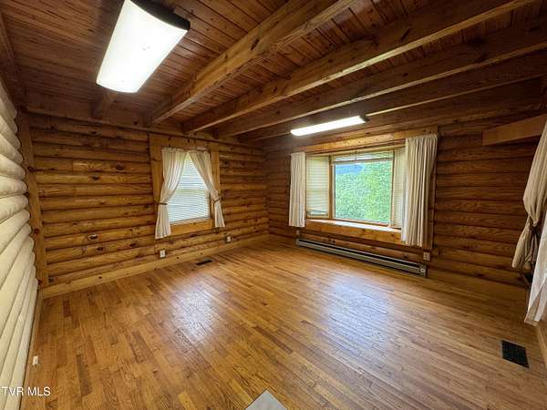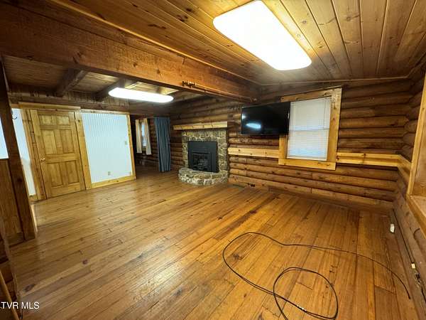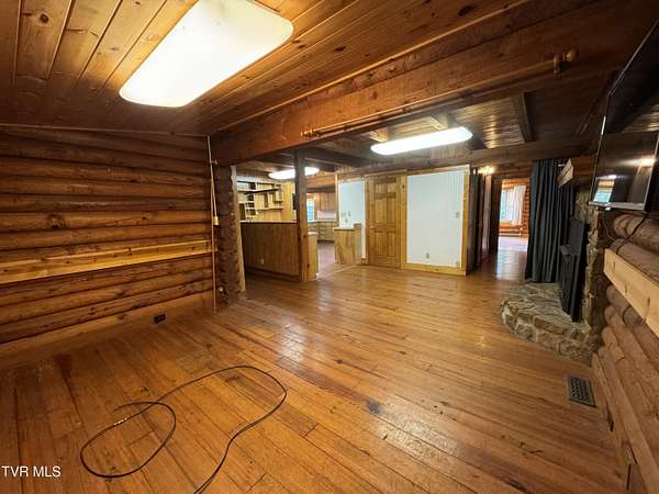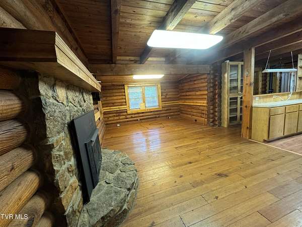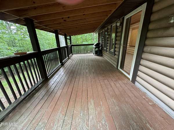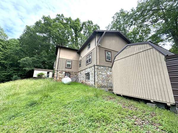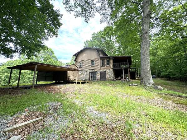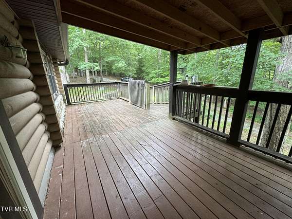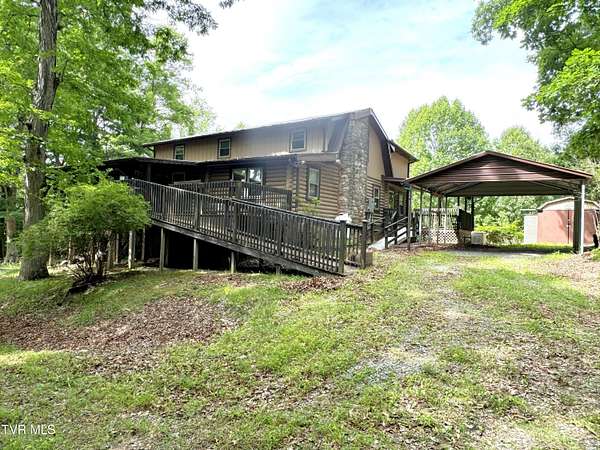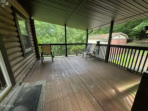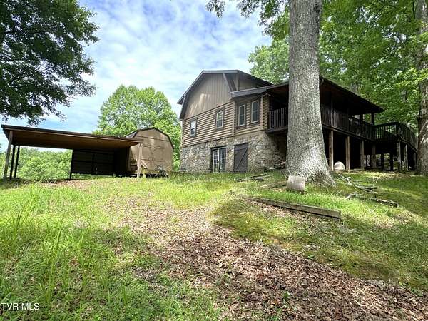 Sprawling 4+ bedrooms, 2 1/2 baths, 3870 sq.ft. log and stone home on 1.99 secluded acres. Nestled in the shade of huge oak trees with beautiful views of the surrounding mountains and valleys that Powell Valley is famous for. Knotty pine floors and ceilings and log walls throughout the interior. Large windows bring the outdoors in during the chilly days of winter and lots of covered decking allows plenty of space for warm summer evening entertaining with family and friends. The open floor plan boasts a large kitchen and bar/butler's pantry with plentiful cabinets and counters, an adjacent dining room and living room with stone fireplace plus a bonus room off the dining room. There is also a private den down the hallway which could be another bedroom. Off the living room there is an additional room spanning most of the length of the front deck. The second floor has the same wide-board knotty pine floors in all the huge bedrooms and a large bathroom and laundry area. The finished basement has another large bathroom, an open area, a bedroom, a utility room and a large storage area. The wide hallway leads through a large French door to an attached concrete patio. Beside the French door, there is a safe room in case of inclement weather. A metal roof, propane furnace, propane fueled Generac whole-home generator, public water and private septic assure year-round comfort. The only thing missing is a large family to fill it! Shown by appointment only to prequalified buyers.