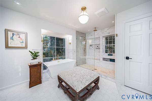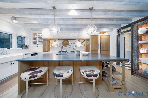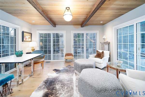 Just in time for Christmas-NICE PRICE ADJUSTMENT-Exceptional luxury 4-bed, 3.5-bath ranch on nearly 4 private acres along the Virginia Capital Trail, minutes from Rocketts Landing & downtown Richmond! Nearly 4,000 sq ft, newly and beautifully renovated inside & out. Dramatic coffered ceilings, chef's kitchen with Monogram, Miele, Sub-Zero & walk-in butler's pantry. Spa-inspired primary suite with soaking tub set before a box bay window, rainfall shower, and elegant finishes. Guest bedroom features custom windows and a unique wet room bath. Daylight basement with rec area, premium bar/kitchenette, 3rd bedroom, and office/flex space. Expansive deck for entertaining for indoor/outdoor living that can accommodate large parties. Koi pond with waterfall. New laundry room/mud room, including a pet spa/shower. 2- car garage. Just minutes to parks, trails and airport. Full amenities and room dimensions in the supplemental PDF!