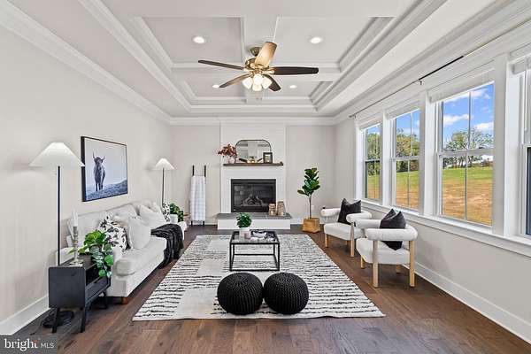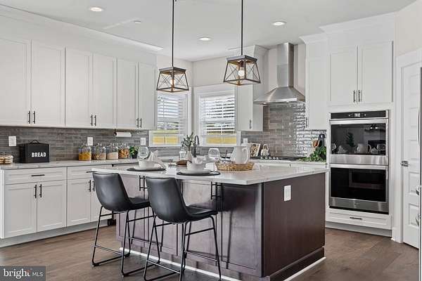 Better Than New and Immaculately Maintained in The Preserve at Forest Hill Farms! Pull up to this showstopping modern farmhouse-style colonial showcasing white vinyl siding with black accents, a covered front porch, professional landscaping, an oversized driveway, and a side-load 2-car attached garage. Through the double entry doors, step inside the stunning main level featuring 9-foot ceilings, luxury vinyl plank flooring, and an open, designer layout perfect for today's lifestyle. The welcoming foyer offers a coat closet and powder room and opens to a private main-level office accessed through custom barn doors-with an additional set leading into the sprawling gourmet eat-in kitchen. Every detail has been thoughtfully curated: quartz countertops, a large accent island with breakfast bar seating and pendant lighting, 42-inch white cabinetry with crown molding, subway tile backsplash, walk-in pantry, and a full suite of stainless-steel appliances, including a smart side-by-side refrigerator, gas/propane cooktop with range hood, double smart wall ovens, built-in microwave, and dishwasher. The kitchen flows seamlessly into the expansive family room featuring tray ceilings, crown molding, a ceiling fan, and a gas/propane fireplace with shiplap surround and custom mantle-creating the perfect space for entertaining or relaxing. Off the kitchen, the mudroom includes custom built-in cubbies and garage access, while 9-foot sliders lead to the custom rear paver patio with stone retaining wall and built-in seating, offering a private outdoor oasis. Upstairs, the primary suite is a true retreat, featuring double door entry, tray ceilings, custom ceiling fan, crown molding, a walk-in closet with dressing area, and a luxurious ensuite bathroom with granite dual vanities, dressing area, private water closet, and an oversized walk-in shower with dual shower heads. The second and third bedrooms share a Jack-and-Jill bathroom with dual vanities, while the fourth and fifth bedrooms are generously sized and located near the full hall bath. The upper-level laundry room adds exceptional convenience. The lower level feels endless, offering luxury vinyl plank flooring, recessed lighting, a massive recreation room, game room area, full bathroom, spacious storage area, and utility room, all with a walk-up to the rear patio for seamless indoor-outdoor living. All of this in the highly desirable Preserve at Forest Hill Farms, a modern, private community just minutes from Bel Air, Forest Hill, and Fallston-offering the perfect blend of luxury, location, and lifestyle.
