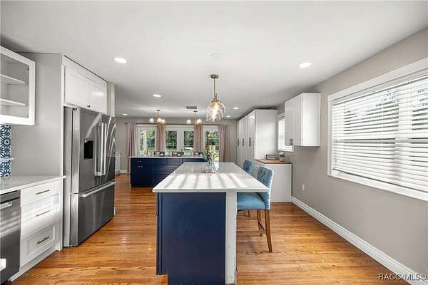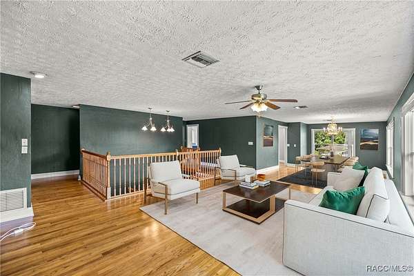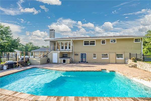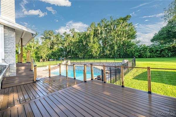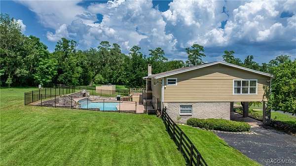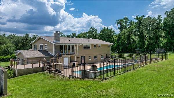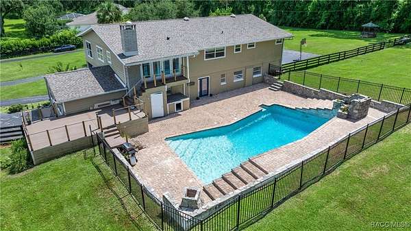 One or more photo(s) has been virtually staged. Welcome to your private retreat in the heart of Southeast Ocala. This stunning three-bedroom, three-bathroom home offers just under 4,000 square feet of beautifully updated living space, nestled on 1.90 acres of A1-zoned land-giving you the freedom and flexibility to enjoy the lifestyle you've been dreaming of, whether it's gardening, keeping animals, or simply soaking in the serenity of a spacious property. Tucked behind a private entry, the home feels like a peaceful escape while still being just moments from Publix, shopping, dining, and other everyday conveniences. Inside, you'll be greeted by warm luxury vinyl plank flooring that flows throughout, setting the tone for comfort and style. The first floor features a spacious guest bedroom and full bathroom, a cozy living room anchored by a fireplace, and a versatile flex space that's perfect for a playroom, home office, or creative studio. Upstairs, the home continues to impress with a second living room and formal dining area that provide additional space to gather and relax. The heart of the home is the stunning remodeled kitchen, designed for both form and function, featuring dual islands, Corian countertops, new stainless steel appliances, and abundant cabinetry that makes entertaining and everyday living effortless. The primary suite offers sweeping views of the grounds and a spa-inspired bathroom with two completely separate wings-each with its own walk-in closet and vanity-connected by an oversized, standalone shower that creates a luxurious retreat. Another generously sized upstairs guest bedroom includes its own private bathroom, offering comfort and privacy for family or overnight guests. Step outside and you'll fall in love with the resort-style backyard, highlighted by a showstopping 55,000-gallon pool with a waterfall feature and a multi-level deck perfect for sunbathing, grilling, or hosting unforgettable get-togethers. A chicken coop and designated play area add to the charm and functionality of this special property, while mature trees and landscaping provide privacy and natural beauty at every turn. With a new roof installed in 2021, two new air conditioning units, a new hot water heater, and all-new appliances, this home is as move-in ready as it is remarkable. Blending luxury, comfort, and the charm of country living-all within city reach-this is a one-of-a-kind opportunity to own a home that truly has it all.