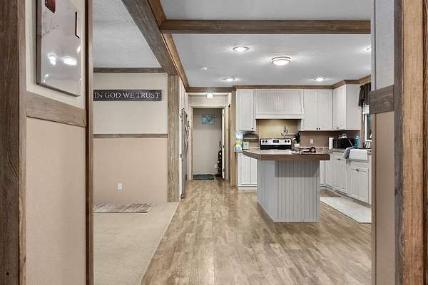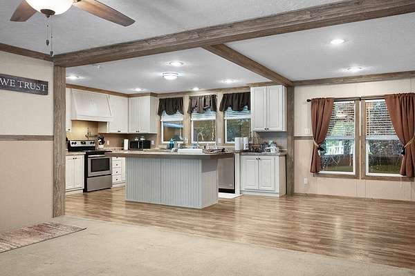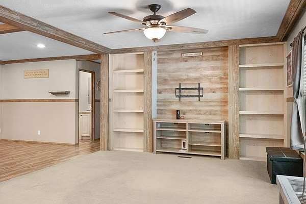 Est $918/moPeaceful country living on 18 acres! This 2018 manufactured home blends modern style with serene privacy, featuring a level yard ideal for pets or play. Inside is a dream kitchen with island, stainless appliances, farmhouse sink, and open flow to a cozy living room with built-ins and rustic accents. The primary suite offers a spa-like bath with tiled shower and dual vanities. Enjoy a custom entryway, vinyl plank flooring, laundry room, and great natural light. Outside, explore wooded hills, relax by the firepit, and enjoy plenty of room to roam.