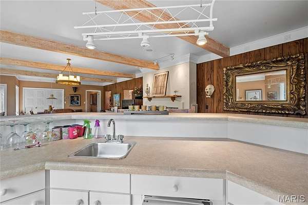- Bar, Breakfast Bar, Ceiling Fan(s), Chandelier, Custom Cabinetry, Double Vanity, Eat-In Kitchen, Kitchen/Dining Room Combo, Open Floorplan, Recessed Lighting, Storage, Walk-In Closet(s), Workshop/Hobby Area