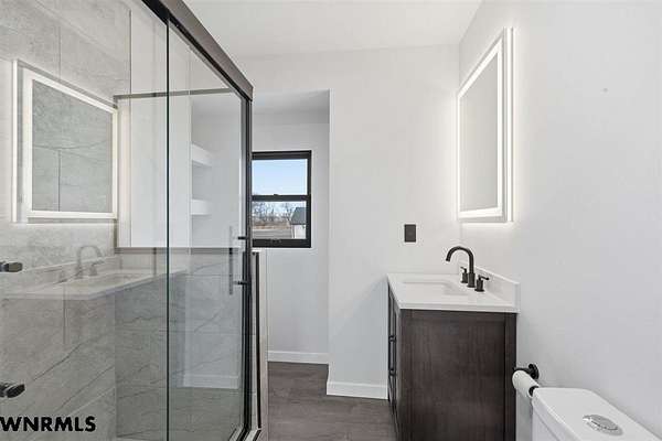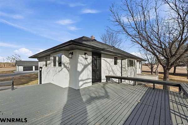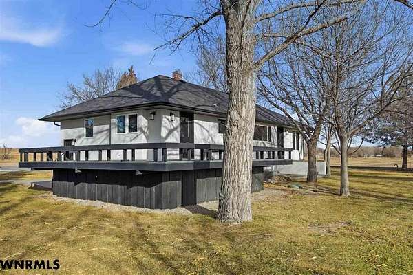 This beautiful, recently remodeled home sits on two acres roughly a quarter of a mile North of Highland Road and half a mile East of Lacy Park in Scottsbluff, NE. This stunning property offers a private escape from the city while also offering the convenience of being less than 10 minutes away from the heart of downtown Scottsbluff. The property features two finished detached garages and a small storage shed as well as room for an additional building. The home comes with a large 469 square foot wood deck overlooking a beautiful yard with over 30 mature trees and a new underground sprinkler system. All of the structures on the property have new stucco and new asphalt roofs. The North garage is 768 square feet with two new insulated overhead doors and features a small lighted storage area above. The garage closer to the home is new and slightly larger at 900 square feet and also features two new insulated overhead doors. Between the two garages is new colored concrete. The property is also on a well system and has two septic tanks. This home comes complete with four bedrooms, two living rooms, one full bathroom, two 3/4 bathrooms, a laundry/utility room, and a pantry. The water heater, plumbing, wiring, flooring, carpet, doors, cabinets, toilets, mirrors, vanities, switches, fixtures, and trim are all new. All the windows in the kitchen are new Pella windows. It features a modern kitchen with new quartz counters and brand-new Frigidaire Gallery appliances. The home also incorporates a new water softening system as well as central air. Taxes and parcel may change due to new survey. Basement bedroom windows my not be conforming.