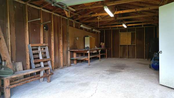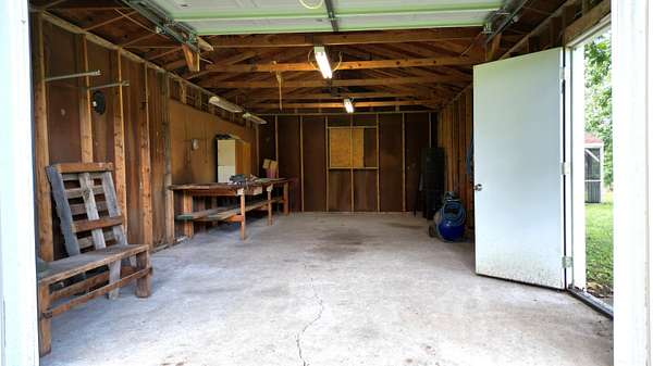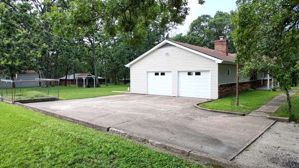 Discover this three-bedroom, two-bath home situated on a spacious 2.3-acre corner lot with mature trees that offer a peaceful and private setting. There is ample space for gardening, outdoor entertaining, or future additions. The home features a full basement, providing room for storage, recreation, or living expansion. Inside, the residence offers a large living and dining area, ready for you to personalize and make your own, with numerous possibilities for updates and customization. The master suite adds to the homes' practical floor plan and provides a bathroom with a walk-in shower; the bathroom's dual access from both the bedroom and laundry room adds convenience and functionality. The home also boasts a large attached two-car garage with a dedicated workshop area, ideal for DIY enthusiasts. A detached workshop building with a concrete floor and electricity is perfect for hobbies, projects, or additional storage needs. Located just minutes from Pomme de Terre Lake and the Pomme de Terre State Park Marina, this property combines convenience with outdoor recreational opportunities, making it an excellent choice for those seeking a comfortable and inviting home in a scenic setting. Property is being sold in its present condition.