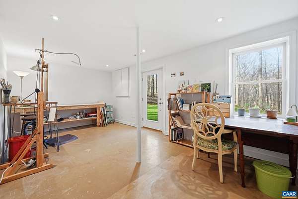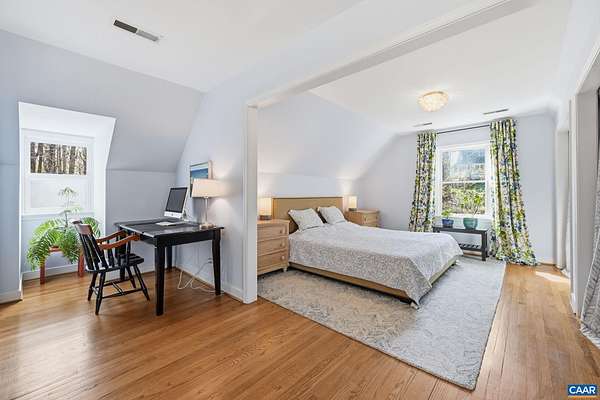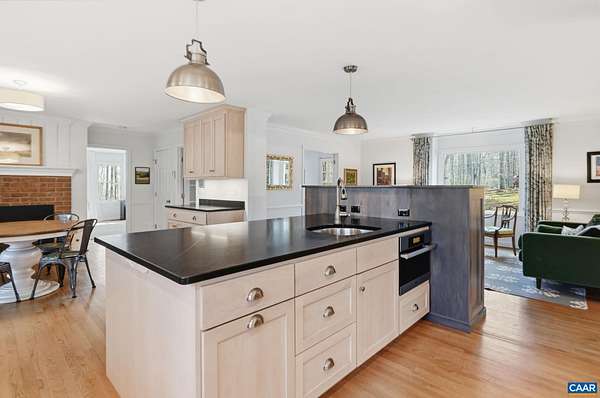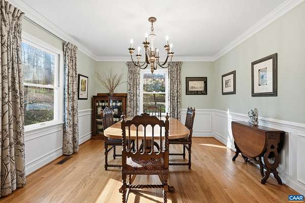 Tucked on over two private acres in a quiet Albemarle County setting, 2404 Pine Garth Run offers a blend of space, comfort, and natural beauty just minutes from shopping, dining, and the University of Virginia. Thoughtfully designed for everyday living, the 5-bedroom, 4.5-bath home provides over 3000 square feet of well-proportioned space with multiple living, dining, and entertaining areas, a first-floor primary suite option, and even an art studio. The custom Karen Turner-designed kitchen featuring gorgeous local soapstone counters, a walk-in pantry, and an induction range opens to an inviting breakfast room with gas fireplace and a large screened-porch. The property provides a serene park-like setting with an ideal balance of open yard space, established gardens, and mature trees creating privacy. A detached two-car garage and ample driveway space add convenience and functionality. Just past the green fields of Foxfield, this gem is located less than five minutes to Ivy Elementary School and less than one mile to the gourmet sandwiches of Hunt Country Market & Deli. Enjoy a rare combination of seclusion, space, and accessibility in one of the Charlottesville area's most desirable areas.