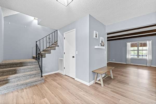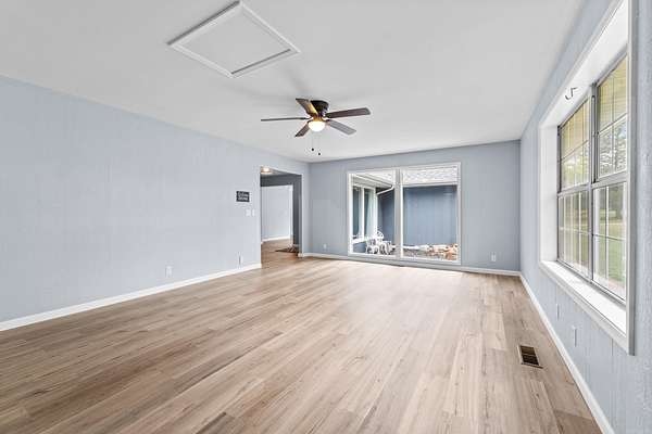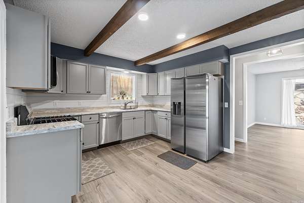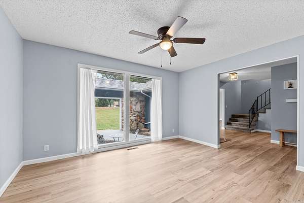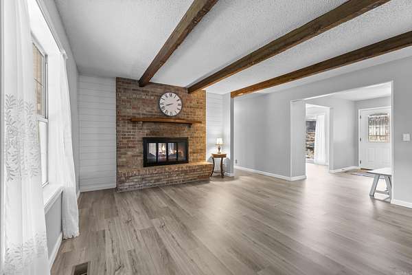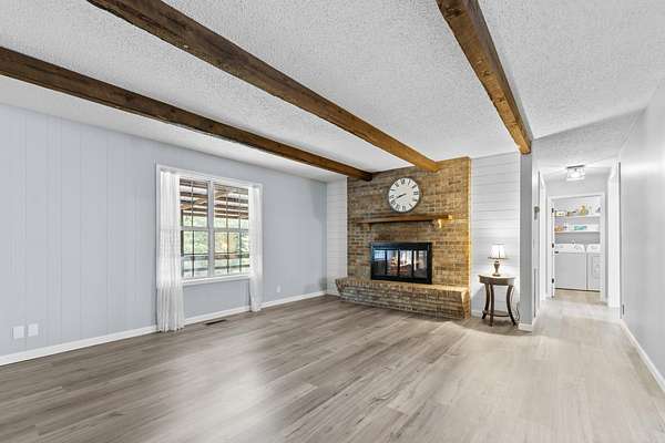 Completely renovated 5 bed, 2.5 bath, three-level home on 2.5 acres just outside city limits. Features include a dual-sided fireplace, stainless appliances, updated cabinetry, and sliding doors to a covered wraparound deck with scenic views. Multiple living spaces include a family room, dining room with waterfall courtyard view, and a lower-level great room with kitchenette and private entrance--ideal for guests or multi-gen living. Layout offers 2 beds/1 bath on the main level, 2 beds/1 bath upstairs, plus 2 bonus rooms downstairs. Updates include new flooring, lighting, waterproofed basement, water filtration, water softener, and gutters. With no restrictions, ample parking, and a move-in ready interior, this property is perfect for families, entertaining, or quiet country living just minutes from restaurants, shopping, and medical facilities.