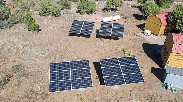 Completely self-sufficient and easily accessible off-grid home on 36+ acres just a couple miles from pavement. This 2021 home is a 1500sq ft - 3bedroom 2bath plus a den home, with the den currently being used as a gym/4th bedroom. It has an open floor plan with beautiful views in every direction. Surrounded by State Trust land on two sides this home is a gateway to thousands of acres of endless exploration of the springs, mountains, rock outcrops etc. that surround this area. All utilities but propane are accessible online, making this a perfect set up for full- or part-time occupancy: AC/Heat, Solar, generator & security cameras. Starlink is connected and can stay with house. The solar inverters are capable of 24 kW and have room for more solar panels if desired, currently runs whole house including 4-ton A/C with no issues. The 9.5kW of panels are on pivot ground mounts and can be adjusted for seasonal angles. Battery storage are EG4 LFP 48V 14.3 kWh each, with 3 batteries equaling 42.9 kWh total. Brand new with 10 year warranty. Cummins 13kW Home standby generator with online access and has very few hours on it; 227 hrs at time of listing. The well, according to driller, can produce more than 100g per minute, currently equipped with a large 80-gallon pressure tank. The 1000-gallon propane tank is leased and serviced by a local provider, who has a program for viewing propane level online if desired. The land has been cleared SE of the home in preparation for the construction of a very large shop. About 10 acres fenced with 3 entry gates including automatic gate at driveway. Chicken coop in 75'x75' pen with goat fencing. This property is a MUST see - the two storage sheds are nicely constructed; one is insulated and houses the power system as well plenty of room for storage. The other is a workshop - housing all the tools that you should need for this homestead. Large Quonset hut also onsite. The tools, tractor, implements and flatbed trailer are available separately; furniture also negotiable. The only out of pocket cost to run this home is the propane.
