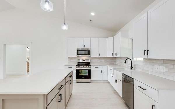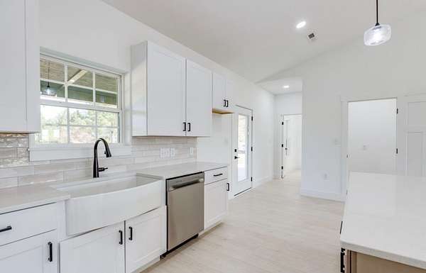 The proposed home features an open and functional floor plan with durable Stainmaster waterproof LVP flooring throughout the main living areas and tile flooring in bathrooms. The kitchen will include stainless steel appliances (stove, microwave, and dishwasher), an upgraded farmhouse sink, and modern finishes designed for both style and functionality.