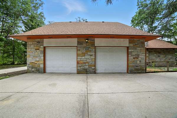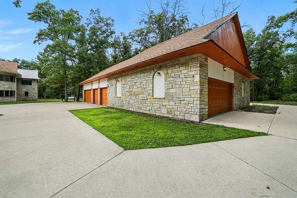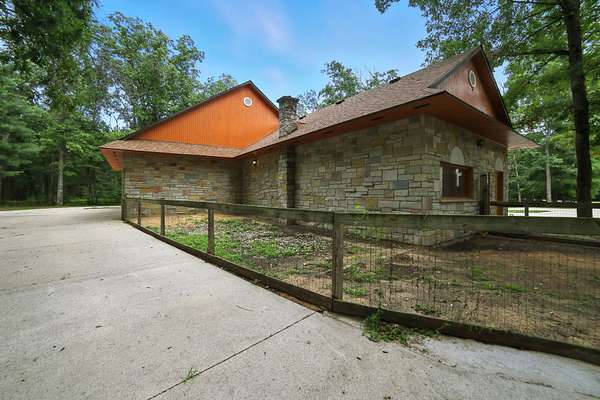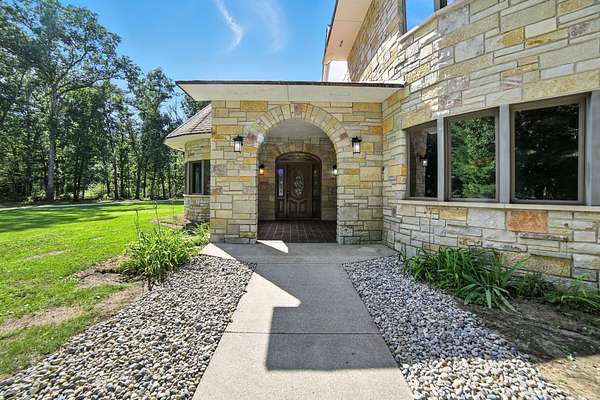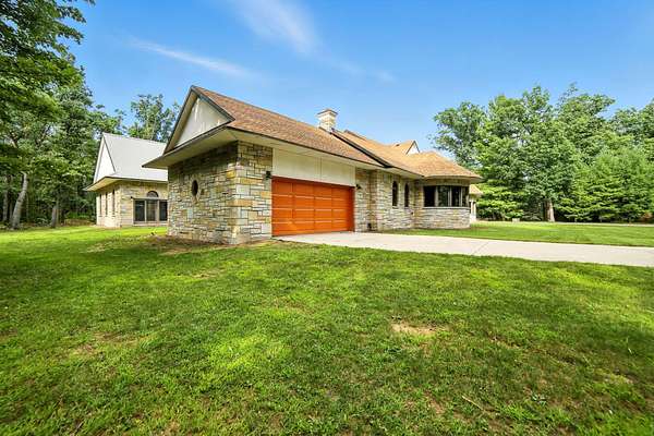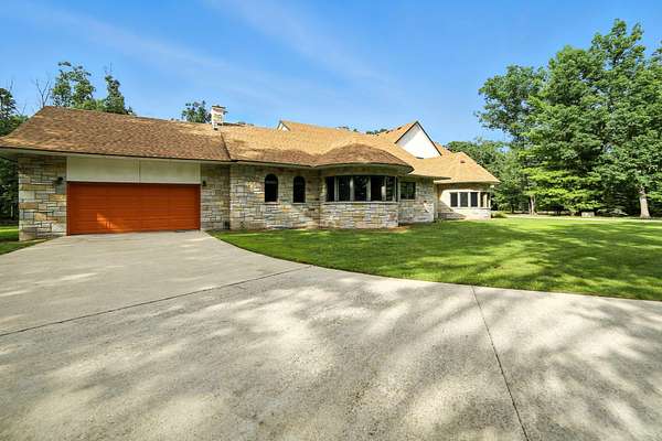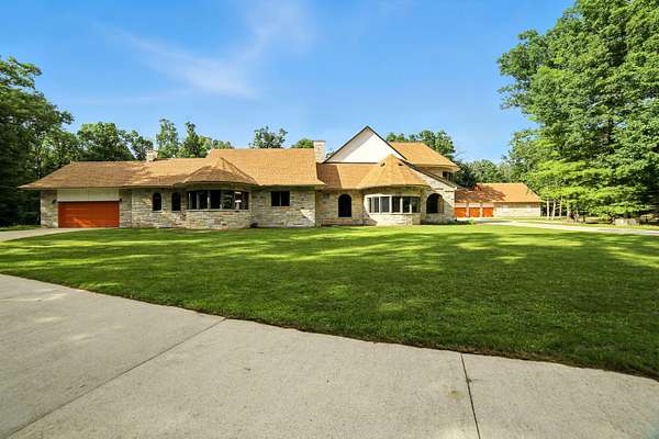 EXQUISITE DESIGN AND CUSTOM BUILT ESTATE KNOWN AS THE 'IRONS MANSION'! Boasting almost 11,500 sq ft, this estate sits on 10 wooded acres adjoining the Manistee National Forest. The property features an Olympic sized indoor pool with sauna, hot tub, and new metal roof and ceiling for year round resort style living. Nearly completely updated, the home showcases a grand foyer, gourmet kitchen, formal dining, living room with stone fireplace, main floor office or bedroom, remodeled game room with wet bar, laundry, and multiple baths. Upstairs are two oversized bedrooms with Jack and Jill baths and a spacious primary suite with walk in closet, spa bath with tiled shower, and panoramic views. Additional highlights include hardwood floors, custom finishes, basement, 2-stall attached garage, 8-stall detached garage with new roofs, epoxy floors, fresh paint, new landscaping, and paved drive. This one-of-a-kind estate offers privacy, functionality, and timeless design. SELLER IS MOTIVATED!