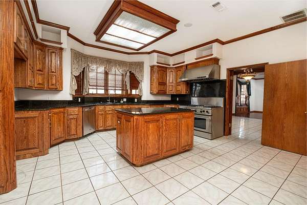 - Built-In Refrigerator, Dishwasher, Disposal, Double Oven, Free-Standing Gas Range, Gas Range, Indoor Grill, Microwave, Range Hood