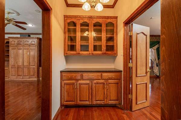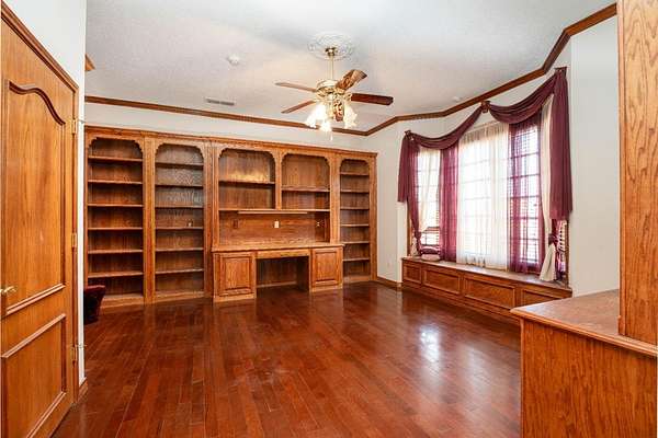 - Bookcases, Breakfast Bar, Built-In Features, Cedar Closet(s), Ceiling Fan(s), Cultured Marble Counters, Double Vanity, Granite Counters, High Ceilings, His and Hers Closets, Pantry, Smart Thermostat, Soaking Tub, Walk-In Closet(s)