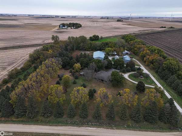Est $2,817/moLarge custom built 4 bedroom home located on approximately 15 acres m/l. Complete main level living includes the spacious kitchen with center island, dining room, living room, family room with fireplace, an office, primary suite with full bath, 3 additional bedrooms, 1 1/2 additional bathrooms and the laundry room. This home features over 3,600 square feet, a double attached garage and Geo Thermal heat/air along with central air. In floor heat in 4 season room and garage. Large machine shed with office, bathroom, heated rooms & loft. 2 gazebos, 2 wells, extensive grove and more outbuilding. Take a look!!