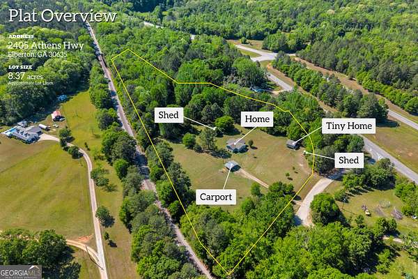 Find the best of both worlds here - the perfect blend of comfort, convenience and country living situated on 8.3+ acres. The main residence here is a three bedroom home that features a split bedroom plan, with the kitchen open to living room and dining room. The front porch is enclosed as a nice & bright sunroom and you'll love the amazing back porch that provides pastoral views all day long. The tiny home is ideal for friends and family, or the perfect income producing investment, with it's on driveway/entrance. The land is beautiful with a wide variety of fruit trees and flowering plants throughout. Enjoy deer watching and star-gazing, plant the garden of your dreams, or just enjoy the peace and quiet. This property is just a few minutes to Elberton or Comer and a quick commute to Athens. Call today!