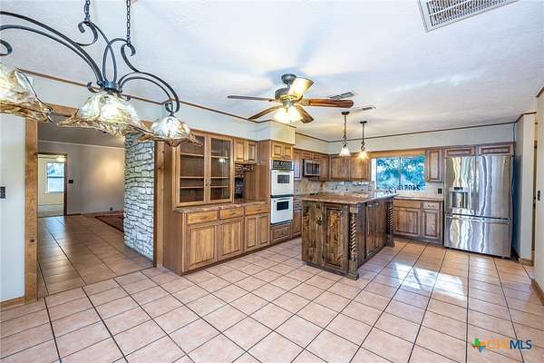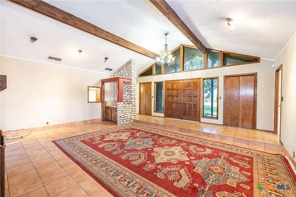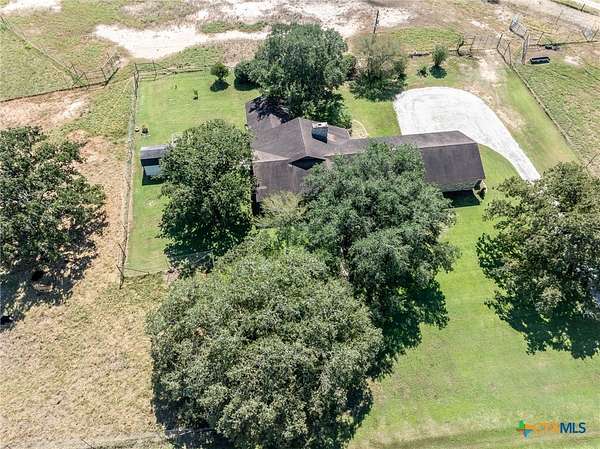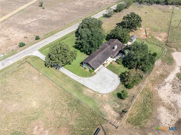 Nestled on almost 7 acres is this spacious three-bedroom, three-bathroom residence just outside the city limits. The double front doors are a welcoming feature to the rustic charm and cozy comfort of the large living area with a vaulted ceiling accompanied by wood beams and wood burning, masonry fireplace. The eat-in kitchen has granite counter tops, double ovens, and a large island to accommodate gatherings. Each bedroom offers and ensuite bathroom. The primary has a double vanity with two walk-in closets and outdoor access to the canopy of oak trees that offers an abundance of shade. Outside, the high fenced property provides security and ample space for agriculture, livestock or other endeavors. This property extends endless possibilities for those seeking to create a perfect retreat and it is conveniently located just minutes form shopping, dining, schools, doctors and hospital associated with Gonzales Healthcare Systems. Discover your dream and set up a showing today!