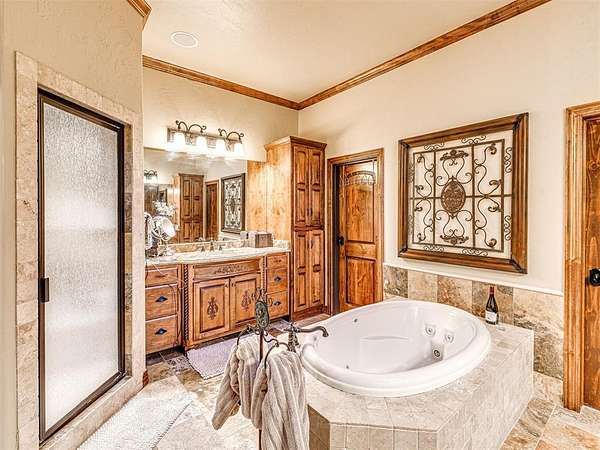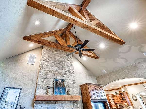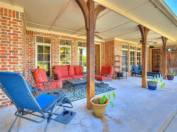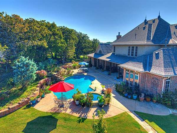 Set on nearly seven acres inside Edmond city limits (and just a mile north of Pops), this exceptional estate offers the rare mix of luxury, space, and smart efficiency. The home includes 4 bedrooms, 3 full baths, 3 half baths, two spacious living areas, a dedicated study, bonus room, hobby room, plantation shutters, a walk-in pantry, and 3.5 garage stalls-designed for comfort and everyday ease. Step outside to your own private retreat: a sparkling pool with hot tub, colorful flower gardens, a stocked pond, and an irrigated garden ready for fresh seasonal produce. Evenings are easy to enjoy thanks to the mosquito misting system. Major improvements add value and peace of mind, including three geothermal units (all under three years old), a new hot water tank in 2024, and a high-impact, hail-resistant roof installed in 2019. A generator, continuous hot water, and an impressive 300-mph safe room elevate both security and convenience. Resort-style living meets city accessibility here - a truly special Edmond property that's ready to be enjoyed