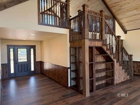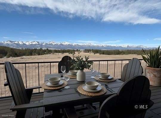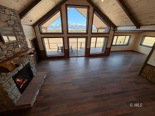 Striking mountain new construction (2025) with commanding, unobstructed views of the Sangre de Cristos! Designed to balance refined craftsmanship with high-performance living, this home features Tuff Core flooring, tongue-and-groove aspen ceilings, knotty alder wainscoting, and custom wood detailing throughout, including a statement staircase. The open-concept kitchen is both elegant and functional with granite countertops, stainless steel appliances, dual ovens, a wet bar/coffee bar, and custom hickory soft-close cabinets. A vaulted great room centers on a dramatic architectural stone fireplace from The Wood Shed with 41,000 BTUs (21,000 on low). Built for year-round comfort and efficiency with Andersen 100 Series double-pane windows, in-floor radiant heat, R-49 attic insulation, R-21 closed-cell spray foam walls, and a conditioned crawl space. Three main floor bedrooms include a serene primary suite with a walk-in closet and spa-style ensuite with a separate walk-in shower. Additional features include oversized laundry w/ half bath, open foyer, versatile loft, heated 768 sq. ft. garage, Tru-Log steel siding, and full length deck. Virtually staged to show the possibilities!