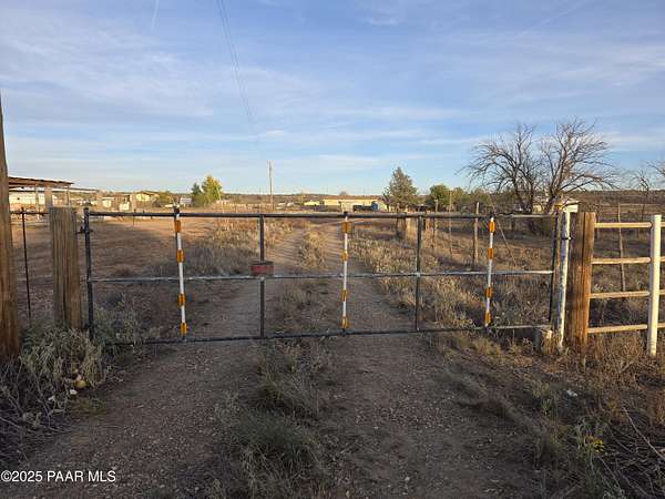 From Chino Valley take Highway 89 N. and just past big Chino Road on your right hand side turn into driveway right before sign that says Laguna Trail. Stay to your left and drive straight to the gate with the solar light on top. Go through the gate and you'll be on the lot.