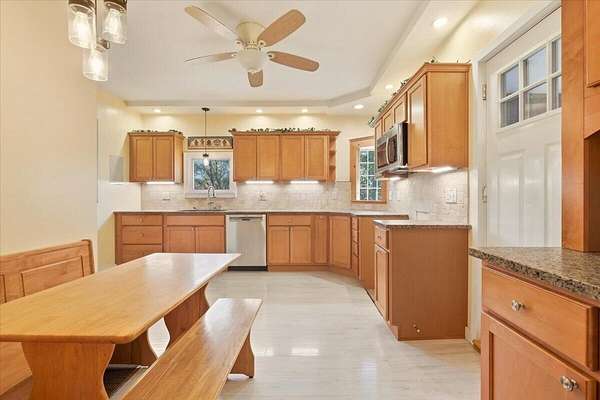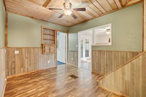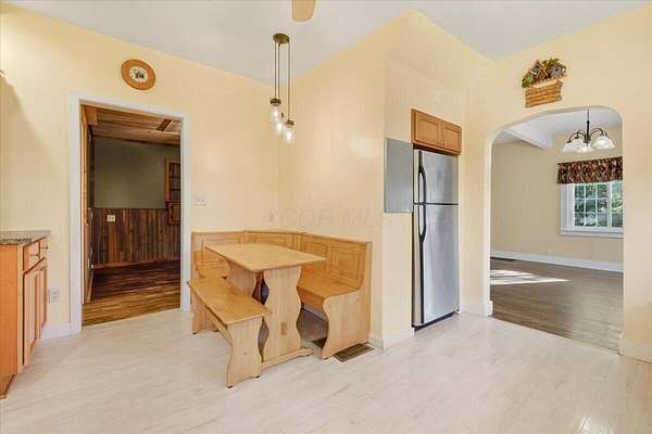 Perched on a scenic hill just across from the Kokosing River, this beautiful 2.46-acre property offers the best of country living-only minutes from town. A concrete driveway leads you to a spacious, heated garage already equipped with a workshop. Prefer a rec room, man cave, or hobby space? You've got options. After a long day, leave your dirty work clothes right in the laundry area-no need to track them through the house. Step into the updated maple eat-in kitchen, perfect for everyday meals or hosting guests. The open-concept dining and living area flows seamlessly to a private back patio, ideal for relaxing or entertaining. Working from home? Enjoy a quiet office/den that connects directly to the primary suite, complete with an organized walk-in closet and a large ensuite bath. 2 additional bedrooms upstairs offer space for the rest of the family or guests. Stay cozy all winter with the efficient outdoor wood burner-or opt for traditional comfort with the furnace. Central air keeps the home cool during summer months. Need more space? Follow the extended concrete drive to a second garage with a covered porch-perfect for storing hunting gear, creating a hobby zone, or transforming into a guest suite or income-producing ADU (accessory dwelling unit). This move-in-ready home has so much to offer-and the Sellers are willing to assist with closing costs and/or pre-paids with a full price offer!!!