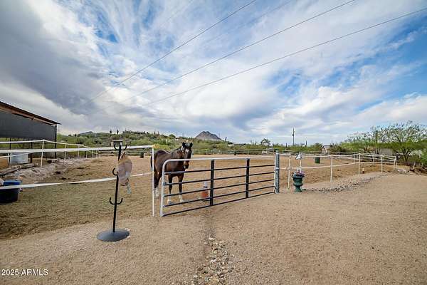 Priced to sell! Very spacious horse property located on 1.64 acres ready for its new owner. 150x150 riding arena & 5 horse stalls. Each stall has industrial fans for maximum air flow, a 48' commercial sun shades. Inside home is very open huge kitchen & eat in area. Vaulted ceilings & split floor plan w master bedroom having a large sitting room or office & large walk in closet. Master bathroom has separate tub & shower. Very cozy & located in rural community of custom homes on land with mountain views & lots of trail riding. Larken horse arena is a few miles away. Roof is approx 5 years old & recently painted exterior. Refrigerator, washer & dryer all convey, No HOA, 2 car attached garage & covered front patio all make this home the perfect choice.