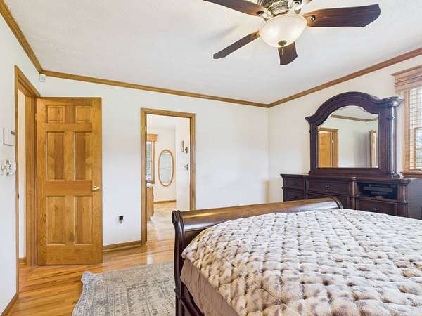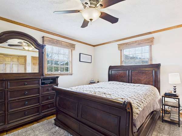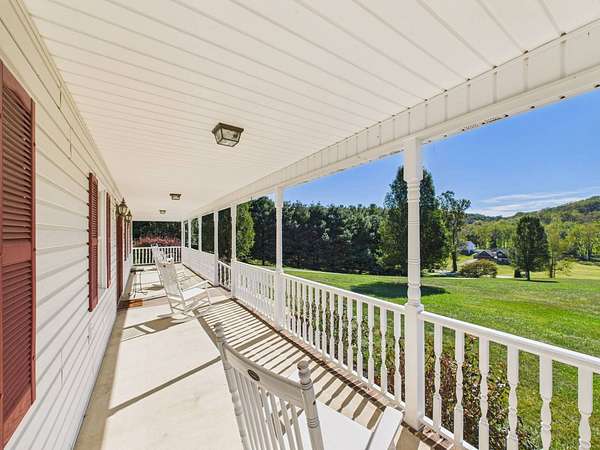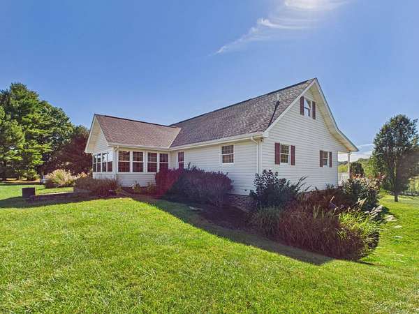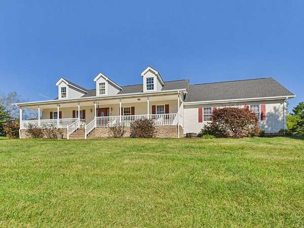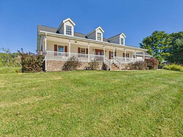 Welcome to this beautiful Cape Cod home sitting atop a gently rolling hill, offering sweeping views and peaceful surroundings on 2.46 acres. With approximately 3,000 square feet of living space, this charming residence combines classic style with comfortable modern living. Be sure to check out the virtual tour! Inside, you'll find gleaming hardwood floors throughout the main level, creating a warm and inviting atmosphere. The main floor features three spacious bedrooms and two full baths, including a private primary suite. The thoughtfully designed layout also includes a bright living room, kitchen and dining area, and a sunroom where you can enjoy the scenic countryside year-round. Upstairs, a generous bonus room offers flexible space that could serve as a fourth bedroom, home office, or studio. The finished lower level includes a cozy den-perfect for entertaining or relaxing-as well as a workshop for hobbies or projects. A large attached garage provides ample storage and includes a convenient laundry room. Outside, the home features a spacious, flat backyard ideal for outdoor gatherings, pets, and gardening. The inviting front porch is perfect for relaxing in a rocking chair while taking in the beautiful hillside views and gentle breezes. The home features a new roof, new quartz countertops in the kitchen and bathrooms, and a Generac generator. Located near the Virginia Creeper Trail, this home offers the best of both worlds-serenity and convenience. Don't miss this rare opportunity to own a well-maintained, spacious Cape Cod home in a truly picturesque setting.