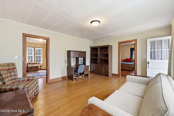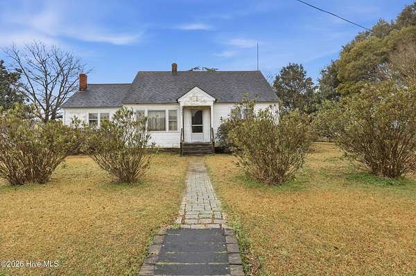 Est $1,090/mo1.76 acre parcel in the county with outbuildings (tractor shed and old wooden shed) and beautiful Scuppernong Grapes and lots of plantings. House was built in 1953 and still owned by the same family. Basically a 3BR 1 bath older home with a LR, and an eat-in kitchen. Full floored attic. House being sold in its ''as-is'' condition. This is a wonderful piece of property to restore or renovate to today's needs!