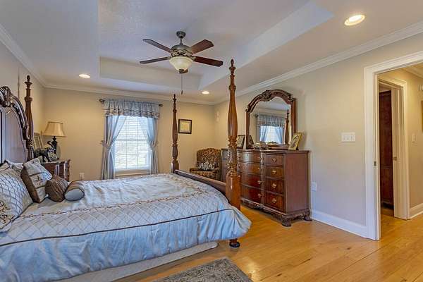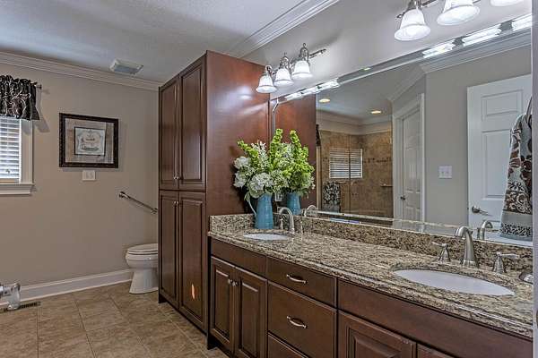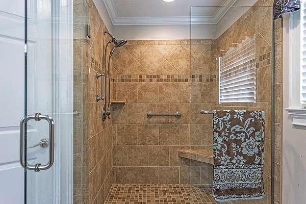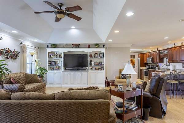 - Bathroom Mirror(s), Breakfast Bar, Ceiling Fan(s), Crown Molding, Granite Counters, Open Floorplan, Primary Downstairs, Separate Living Quarters, Tray Ceiling(s), Walk-In Closet(s), Walk-In Shower, Wired For Sound