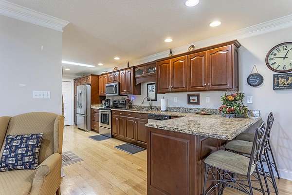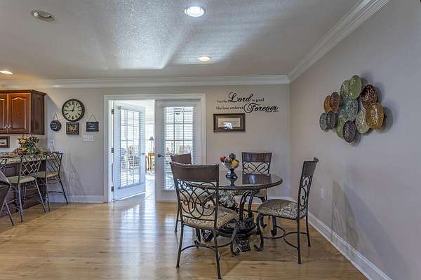 Immaculate, custom-built, like-new all brick ranch with finished basement (offers separate living area) on 3.5+/- acres, offering over 2,900 sq. ft. of versatile living space. This beautifully maintained home features a dream kitchen with stainless steel appliances, abundant cabinetry, bar seating, and a breakfast nook overlooking the expansive living room with gleaming hardwood floors. The showstopping 550+ sq. ft. sunroom with floor-to-ceiling windows is perfect for entertaining, relaxing, or formal dining. The main level includes a spacious primary suite with tray ceiling and en-suite bath featuring dual vanities, walk-in tile shower with seat, linen cabinet, and walk-in closet. A guest bedroom, full bath, and laundry room complete the main level. Crown molding and hardwood or tile flooring run throughout. The finished basement offers excellent potential for separate living quarters with a kitchen (range and refrigerator), bar seating, living room, breakfast nook, bedroom, and full bath. Also located downstairs are a one-car garage with additional storage and a storm shelter. Additional features include a gas-powered whole-house generator with safety features, two driveways (carport and basement garage access), and an extra outbuilding ideal for storage, workshop, or clubhouse. Prime location just minutes to shopping, dining, and I-75. A rare opportunity offering space, quality, and convenience!