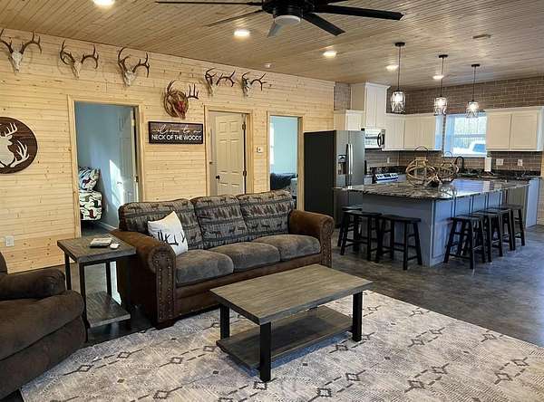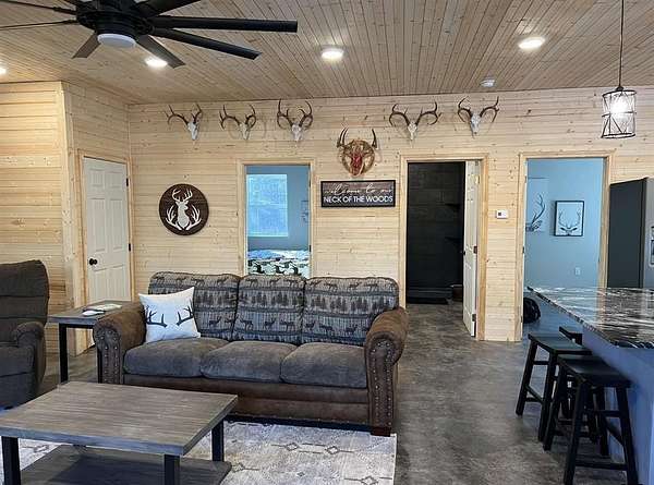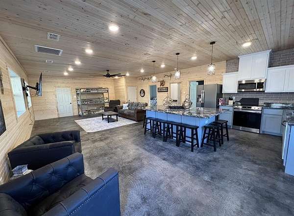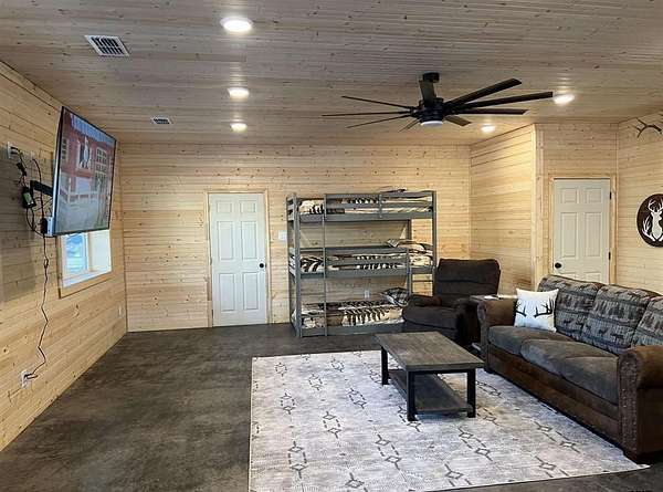 146.76 Acres of Prime Hunting & Recreational Land with Barndo in Lone Star, Texas. Welcome to your private East Texas retreat--just 2.5 hours east of Dallas lies 146.76 acres of pristine land, perfectly tailored for outdoor enthusiasts, hunters, and those looking to escape city life without sacrificing comfort. This versatile property features a well-appointed 1,750 sq. ft. barndominium, offering approximately 1,225 sq. ft. of stylish living space and the remainder dedicated to ATV or vehicle storage. Inside, you'll find stained concrete floors, granite countertops, an oversized kitchen island with wrap-around seating, LED lighting, and a utility room with stackable washer and dryer hookups--perfect for weekend getaways or full-time living. Step out onto the large, covered front porch with extended concrete for relaxing mornings or entertaining under the stars. Outdoor amenities are designed with recreation and functionality in mind: o Approx. 3-acre stocked pond with a fishing pier and fire pit for peaceful evenings by the water o 400-ft deep well and aerobic septic system o Abundant wildlife including white-tailed deer, hogs, and turkey o Skinning rack, hunting blinds, and feeders for serious hunters o ATV trails and hard clay roads for easy access throughout the property o 60% planted pine and mature hardwoods providing natural cover and future timber potential Whether you're searching for a hunting paradise, recreational getaway, or a homestead surrounded by nature, this exceptional property delivers it all.