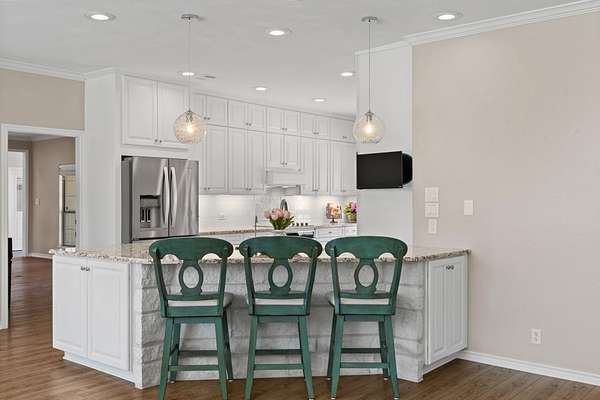 - Breakfast Bar, Crown Molding, Granite Counters, High Ceilings, No Steps to Entry, Pantry, Walk-In Closet(s)