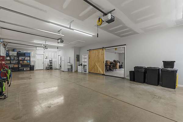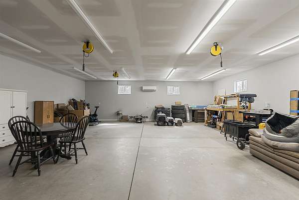 This stunning custom-built barndominium, less than a year old, offers the perfect blend of modern comfort, functional design, and peaceful country living on 15 secluded acres. Private. Custom built for the way you actually live. With no interior load-bearing walls thanks to clear span construction, this home offers true flexibility for living, working, and growing. Step inside to discover 9-foot ceilings and an open, thoughtfully designed layout featuring a spacious family room with built-in cabinetry and a ventless propane fireplace. The heart of the home is a huge clean line kitchen with abundant storage, quartz countertops throughout, and plenty of room for gathering and entertaining. The expansive primary suite is a true sanctuary, complete with dual walk-in closets, a massive walk-in linen closet, double vanities, a large walk-in shower, and private access to the outdoors. Designed for both comfort and efficiency, the home features hydronic floor heating, a propane tankless water heater, fiber internet availability, and an isolated mechanical/electrical room. A 500-gallon propane tank and a brand-new tri-fuel generator--with hookups for both the home and garage--provide added peace of mind. A standout feature is the covered breezeway with dual powered screens, seamlessly connecting the home to the impressive 3-car garage. This space includes a huge workshop area and a separate office with a full bathroom and kitchenette--ideal for a home business, guest quarters, or private in-law suite. The garage is also equipped with its own tank water heater and separate electric meter, adding even more functionality to this already versatile space. The property is completed by a fully paved driveway and walkways, a 12' x 12' shed, and the kind of privacy that's increasingly hard to find. If you're looking for privacy, versatility, and modern rural living with high-end features, this one-of-a-kind property delivers it all.