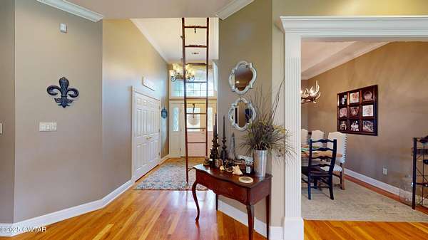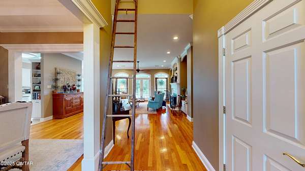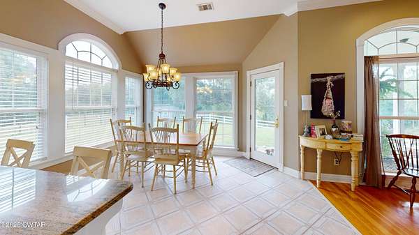 Stunning Country Estate minutes from everything! Experience peaceful country living in this beautiful, custom designed 5,000 sq ft home on 10 acres. Breath taking views from every room of the pond and surrounding farmland. Expansive walk-out basement offers a complete second living space perfect for guests or multigenerational living. Main level features a luxurious master suite with en suite bath, two spacious bedrooms, a full bath, formal dining room, home office, and breakfast room. The oversized den is the heart of the home, showcasing custom built-ins, a gas fireplace and panoramic views of the property. Whether you are seeking a private retreat or a place to entertain, this property blends comfort, security and scenic beauty in an unmatched setting.