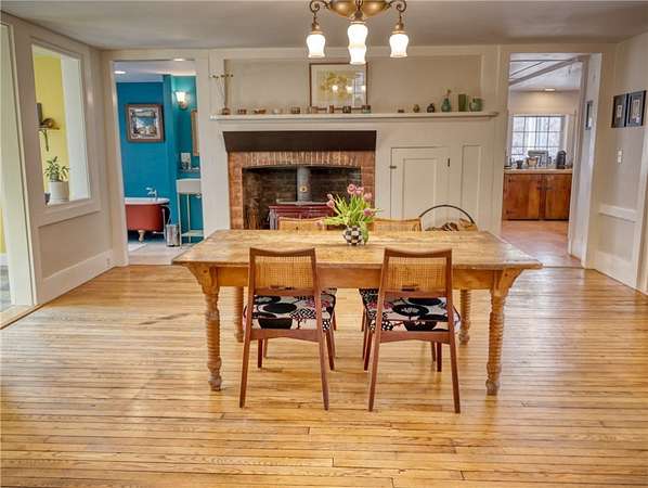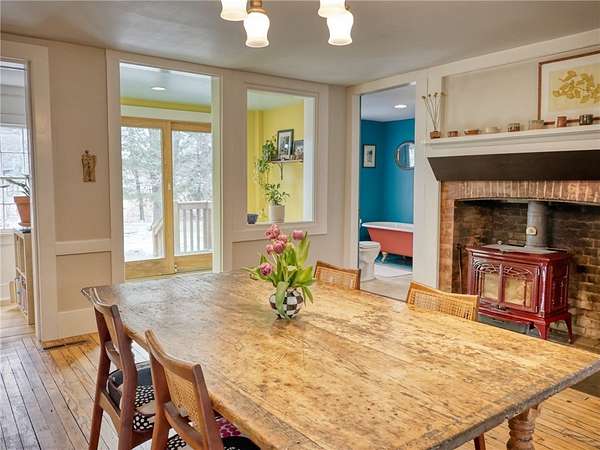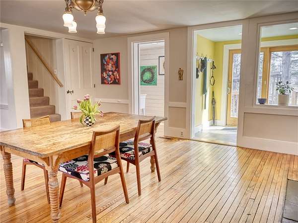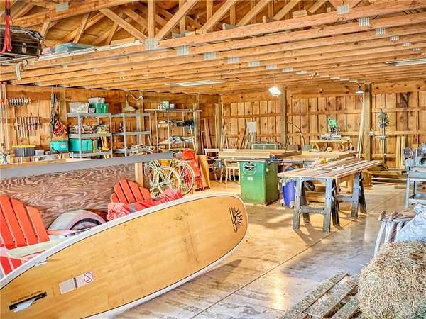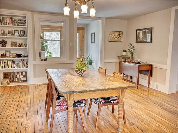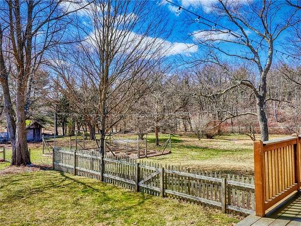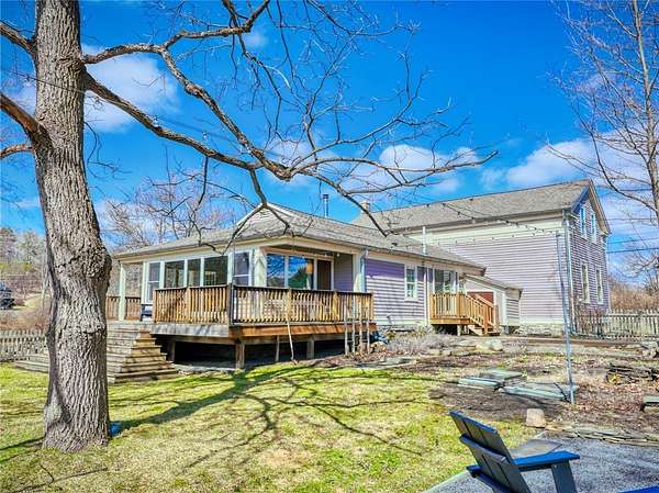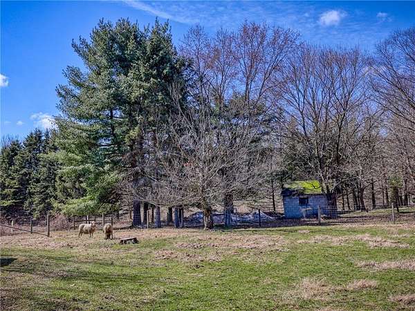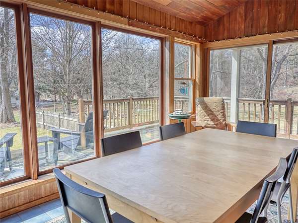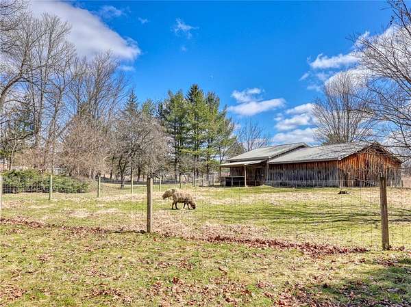 Next door to Ithaca City School District's Caroline Elementary School and a TCAT bus stop, this lovingly and skillfully maintained, gorgeous Greek Revival farmhouse sits on picturesque 2.29 acres featuring a large barn with a woodworking shop and a few livestock (sheep can convey!), a wood shed and a chicken coop, raised vegetable garden and flower beds, an outdoor fire bowl, mature trees, and a small stream. The wrap-around deck overlooking this scenic property is perfect for watching fireflies, stargazing, and hosting outdoor gatherings. Walking through the foyer, the main floor has a light-filled living room, a welcoming formal dining room with a cozy woodstove and space for a large dinner party, a full bathroom, and an artist's studio that could easily be a main floor primary bedroom. The large country kitchen with a generous pantry connects to a three-season sun room that walks out to the wrap-around deck. Your family gatherings and game nights effortlessly flow from the dining room, through the sun room, and into the outdoors. Upstairs are 4 bedrooms and a recently renovated full bathroom. Includes a green driveway with a 30 amp electric RV hookup for van life visitors. Just 12 minutes to the Commons and Cornell University, this idyllic oasis is not to be missed. Review date is 3/31/26.