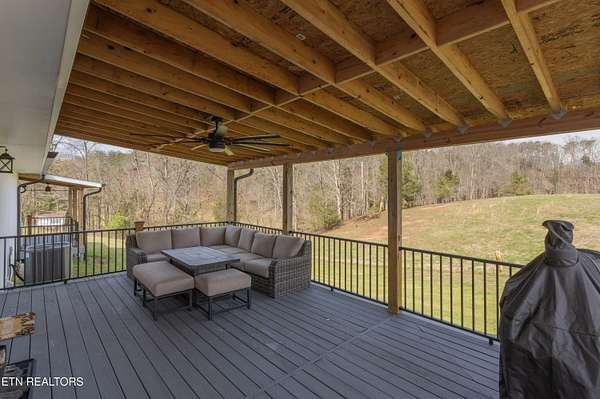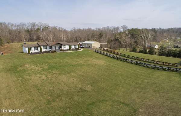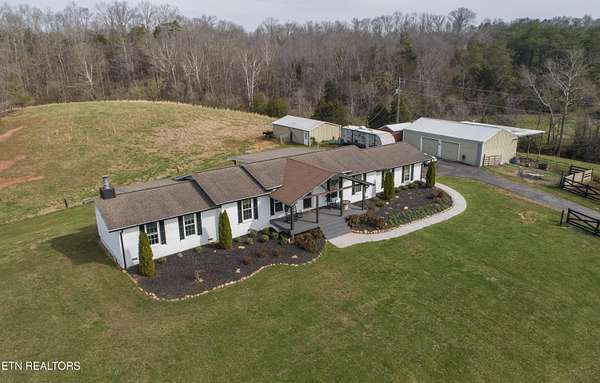 Discover peaceful country living on nearly 10 acres of gently rolling farmland with this beautiful 4-bedroom, 3-bath ranch-style home offering 2,262 sq. ft. of single-level living. Enjoy an open floor plan with a brand-new kitchen (2023) featuring granite countertops and new appliances. The primary suite includes covered porch access, while an additional in-law suite offers its own new refrigerator and range. Relax on the rocking chair front porch, spacious covered back deck, or take in the views of 7 acres of fenced pasture edged by Tuckahoe Creek. Property includes a two-car garage with 220 power, a workshop, barn, and shed--perfect for hobby farming or outdoor enthusiasts. Thoughtful upgrades include an Ecobee Smart Thermostat, Lutron lighting, UV well system, water softener, and 100-gallon water heater. Wired for a whole-house generator. Conveniently located just minutes from I-40 (Midway Exit) and within easy reach of Knoxville, Sevierville, Pigeon Forge, and Gatlinburg--rural tranquility with modern convenience!