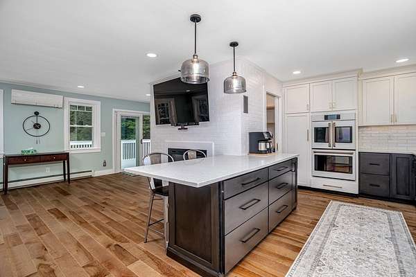 SPECTACULAR best describes this renovated on ownership Ranch home with welcoming custom front entry on 5.19 wooded acres with 125ft frontage on Watatic Pond! NEW 3 Bedroom Septic being installed.MUST SEE attached Upgrade document on MLS-TOO much to list! Gorgeous & full modern Kitchen with state-of-the-art appliances:Thermador induction cook top,wall mount glass chimney hood,Cafe Dishwasher drawers,Quartz star white counters, Kith one cabinets,Karus sink,recessed lighting.Open concept living/dining! 2 large decks! 2bright BR & one w/ 3/4 bath.Lovely full bathroom.NEW flooring,roof,windows,doors,baseboards,Bouderus furnace,HW tank,Mitsubishi splits,Modern light fixtures, & MORE!Finished basement with den,kitchen area for entertaining,Office/Bedroom! HUGE 10'X24' 2025 Garage on separate lot with 14' & 8' Wi-Fi auto doors,modine heater-electric upgrades,compressor & welder outlets plenty of room for toys!!This property offers privacy,landscaped yard & water recreation fun all year round!