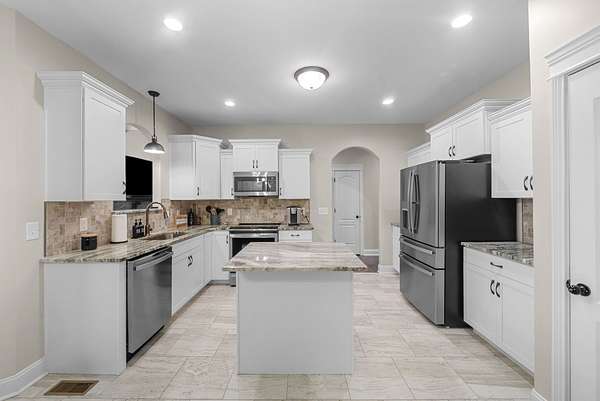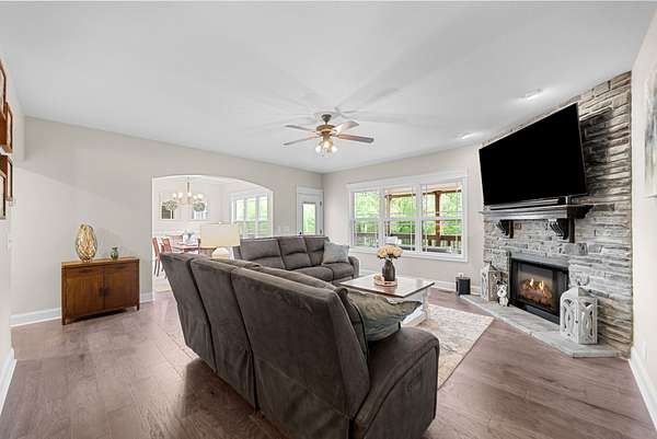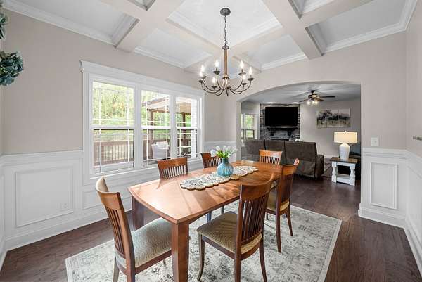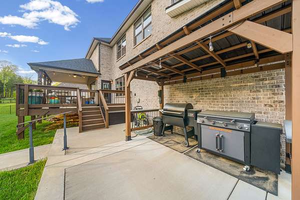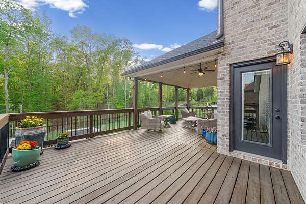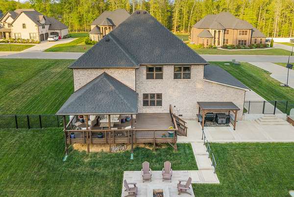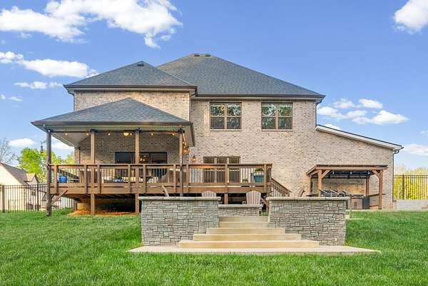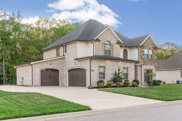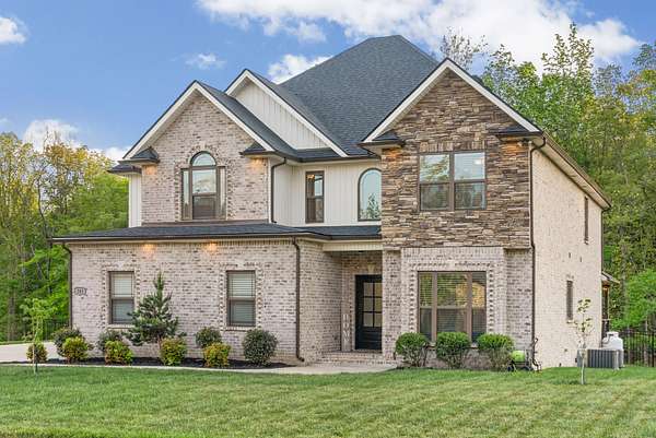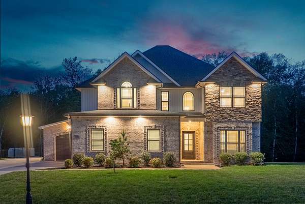 Welcome to your private retreat on 1.84 gorgeous acres where luxury meets peace, privacy and convenience. Nestled on a beautifully wooded lot just outside Clarksville city limits, this stunning all-brick home offers the rare opportunity to enjoy no city taxes, while still being just minutes from Fort Campbell Gate 10. From the moment you arrive, the curb appeal sets the tone with timeless brick, stone accents and a spacious 3-car garage. Inside, you’re greeted by rich wood flooring throughout the main level and continued stained hardwoods upstairs, complemented by fresh, modern paint and elevated architectural details including arched openings, coffered ceilings and elegant trim work. The heart of this home is designed for both everyday living and entertaining, featuring a spacious kitchen with granite countertops, island, abundant cabinetry and seamless flow into the main living areas. A formal dining space with coffered ceilings adds a touch of sophistication, while the cozy living room anchored by a stone fireplace creates the perfect gathering space. Offering 4 bedrooms, 3 full baths + 2 half baths, this home provides both space and functionality. The primary suite is a true retreat, overlooking the private backyard and featuring a spa-like en suite complete with double vanities, a large tiled shower with glass doors, soaking tub and an oversized walk-in closet. Step outside and the lifestyle truly comes to life. A covered back deck spans the rear of the home, offering the perfect place to relax or entertain while overlooking your fenced backyard and the wooded acreage beyond. Down below, enjoy evenings around the custom concrete fire pit and patio area, with an additional grilling station and extended outdoor living space designed for hosting. With over $60,000 in upgrades, this home has been thoughtfully enhanced and meticulously maintained delivering a move-in-ready experience. If you’ve been searching for space, privacy, and a high-end feel, welcome home.