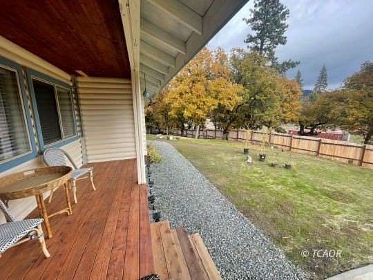 - All Year Access, Borders Creek, Deck(s) Covered, Garden Area, Horse Property, Lawn, Out Buildings, Partial Fenced, Partial Landscape, R V/ Boat Parking, Trees, View of Mountains, Work Shop