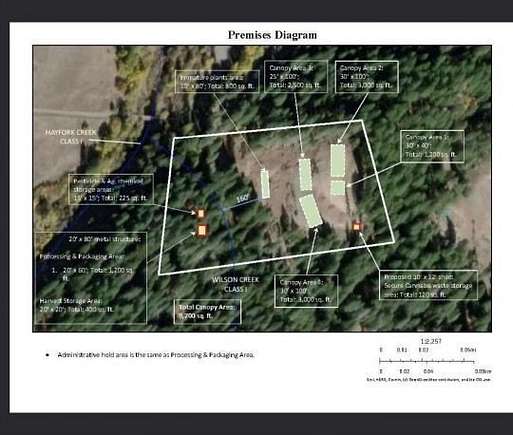 A pretty 5.34 acres of varied terrain located in the Wildwood area. There has been quite a bit of development over time, that includes the start to a cabin tucked in the trees which is currently at a dry shell status. Just finish it off to your liking! Large 20'x80' metal building for parking, storage, or workshop (or processing for canna). Owner states that canna licensing application is in progress, so a portion of the land has been developed for the garden, with simple greenhouses on three terraces built to take in the sunshine. CEQA has been completed. Wilson Creek flows through the property and it appears the western boundary is Hayfork Creek. Property has a 48 gpm well (per county records), power, and septic! This one is almost there- you can be the one to put the finishing touches on it to make it your own!
